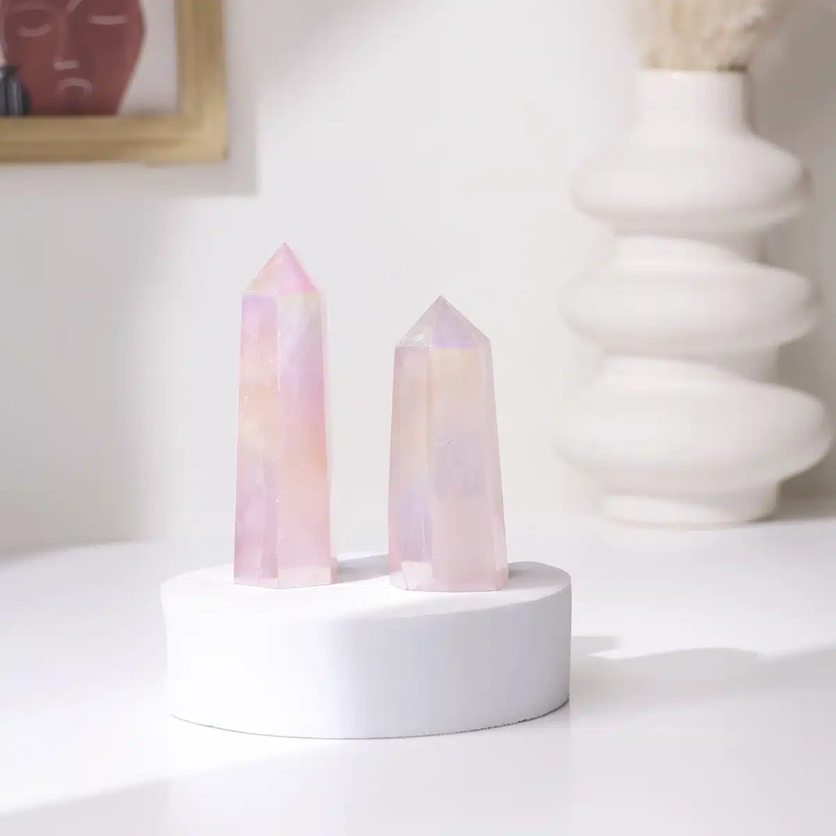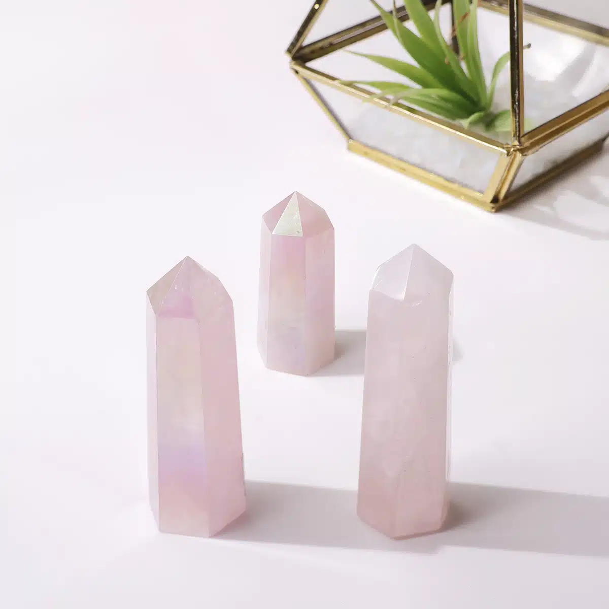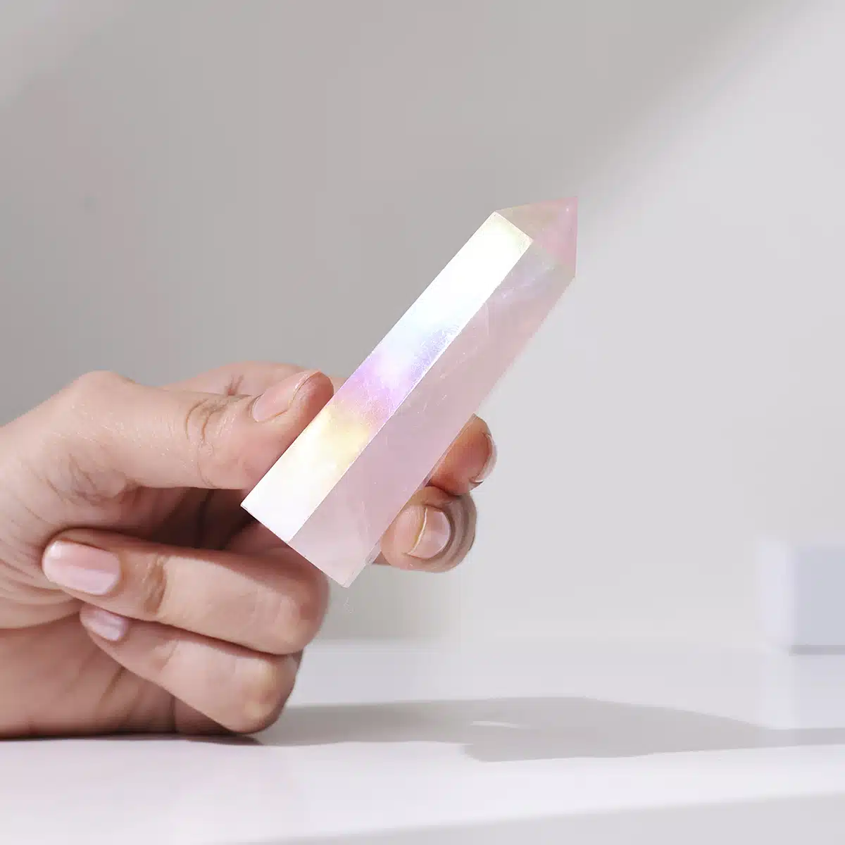 The aura coating enhances the Rose Quartz’s natural energy, adding a layer of high-frequency vibration that elevates mood and dispels negative energy.