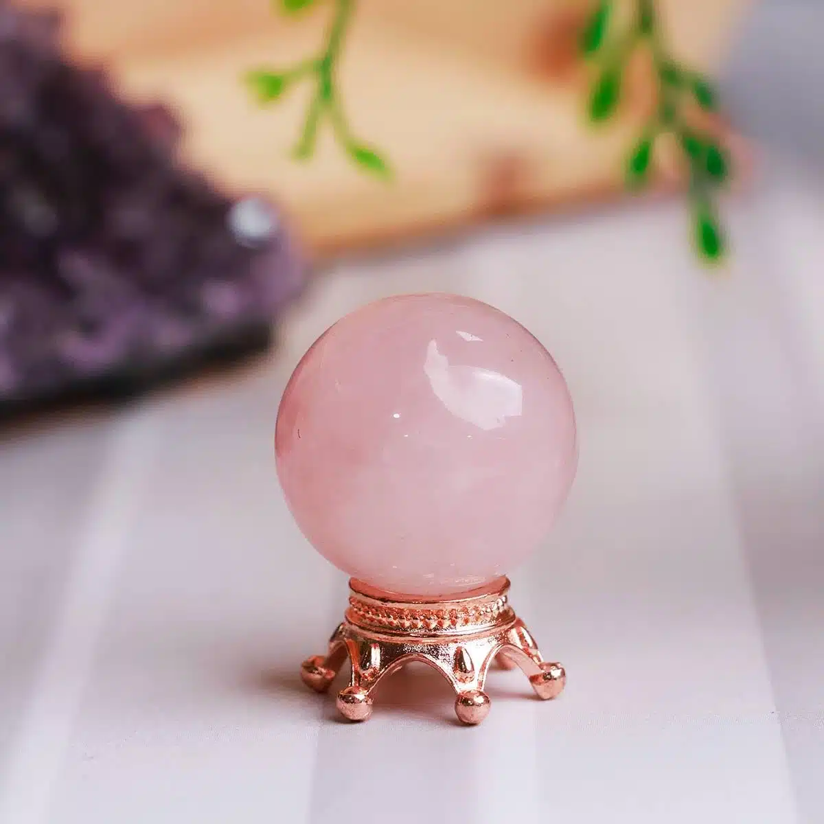 - Place your crystal ball in the center of a room, table or meeting for group harmony.Rose quartz ball is known for its heart healing properties.Rose Quartz Crystal Balls are good for questions about love, family, animals, fertility, self esteem, the home and children. Rose Quartz is good in moonlight or soft natural light but not bright sunlight.
