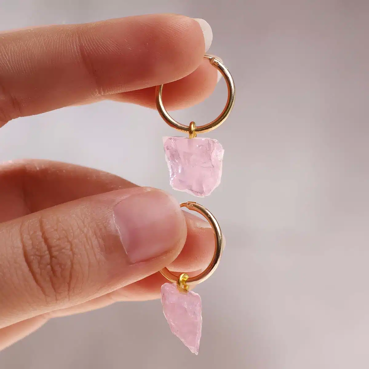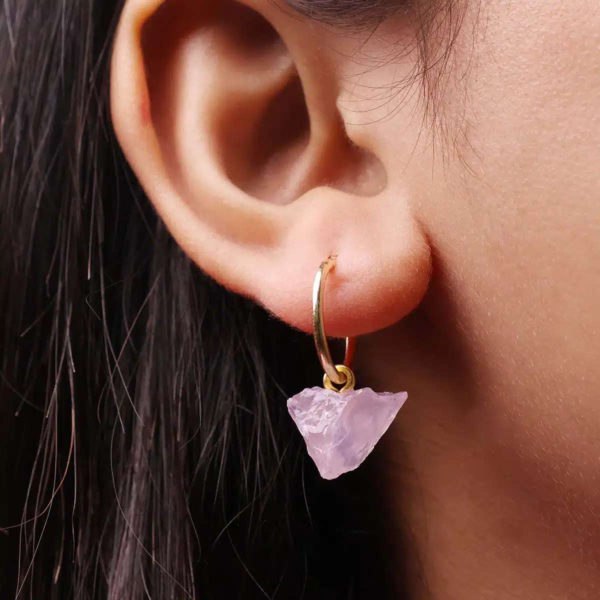 Benefits of Rose Quartz Raw Hoop Earrings :-
