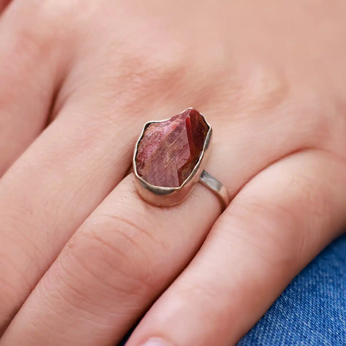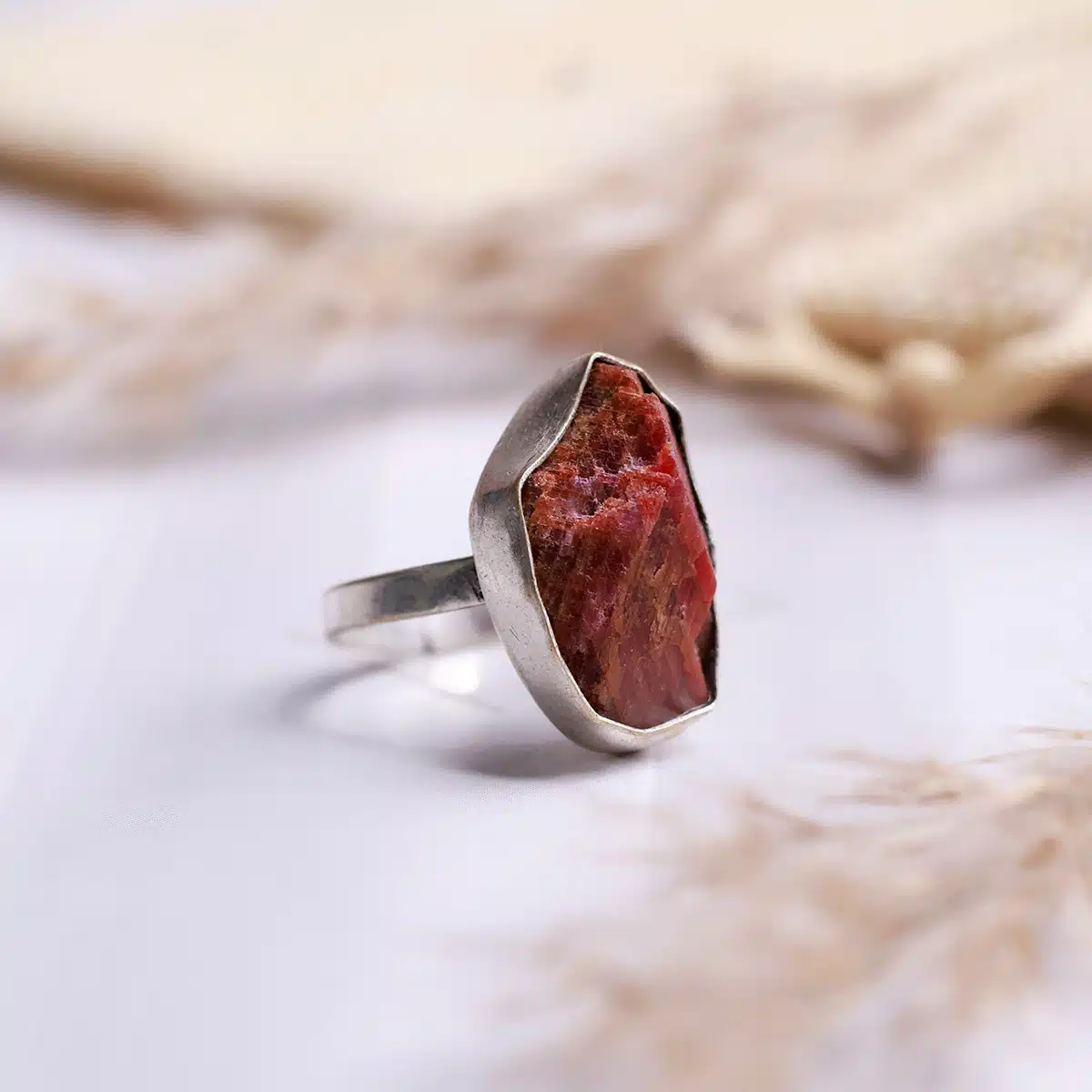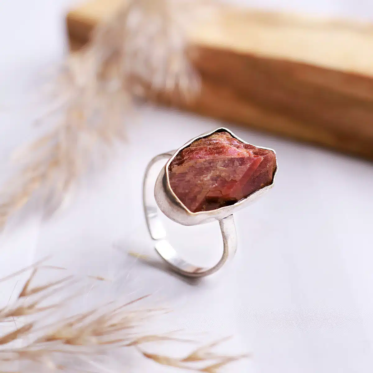 - The raw, unpolished appearance of the ruby gives the ring an organic, earthy feel. Each piece is unique, with no two raw rubies being exactly alike, which appeals to those who want a one-of-a-kind piece of jewelry.
