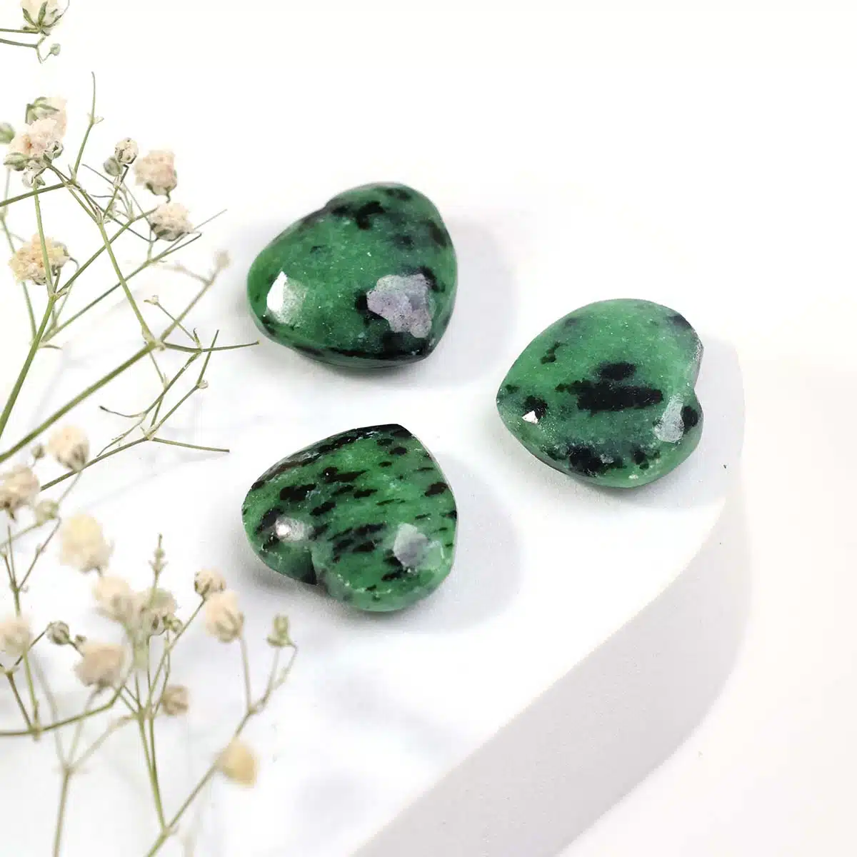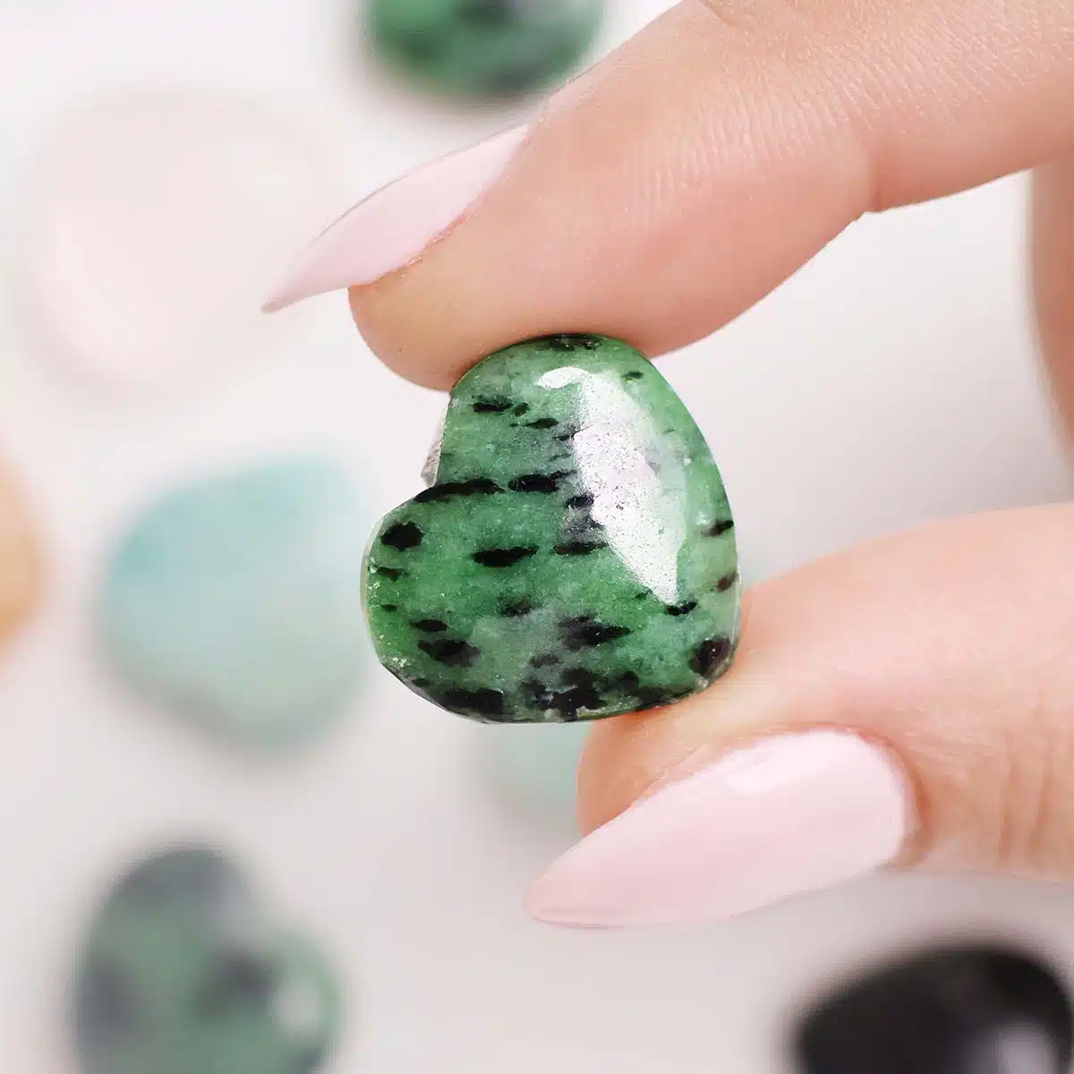 These cute crystal hearts are available in the following stones: RUBY ZOISITE: Vitality, Anger, Psychic abilities, Passion