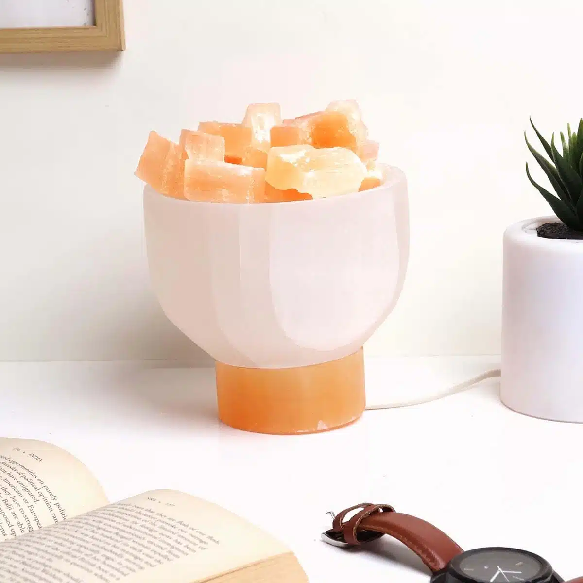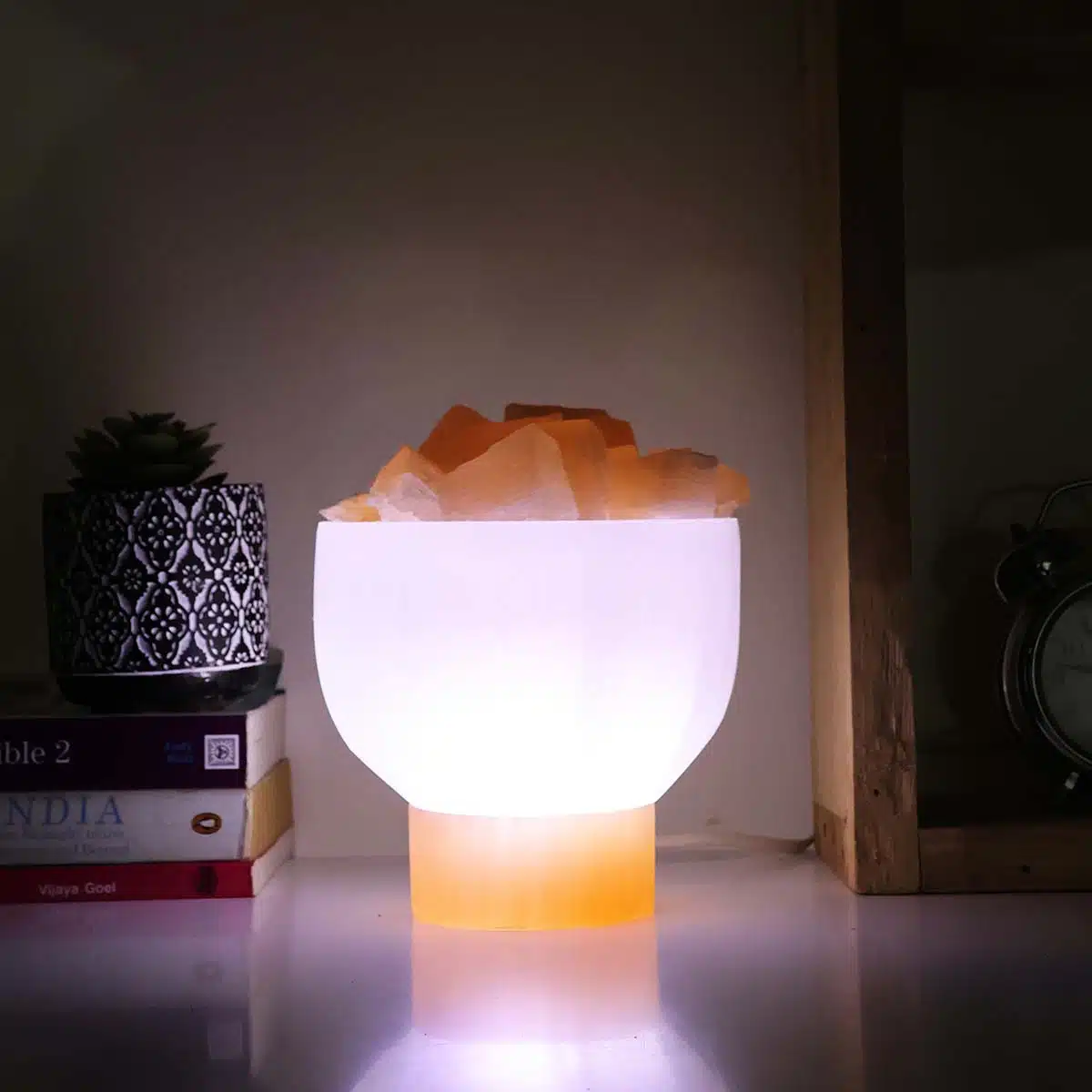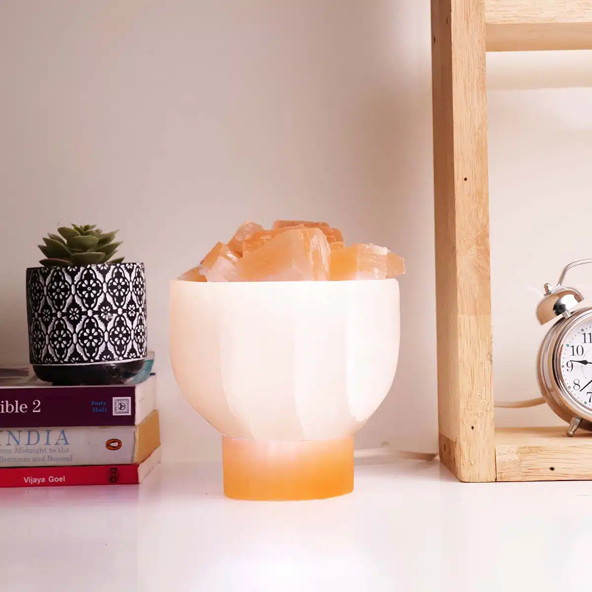 Experience the healing energy of Selenite through this bowl with a Orange Selenite Lamp.