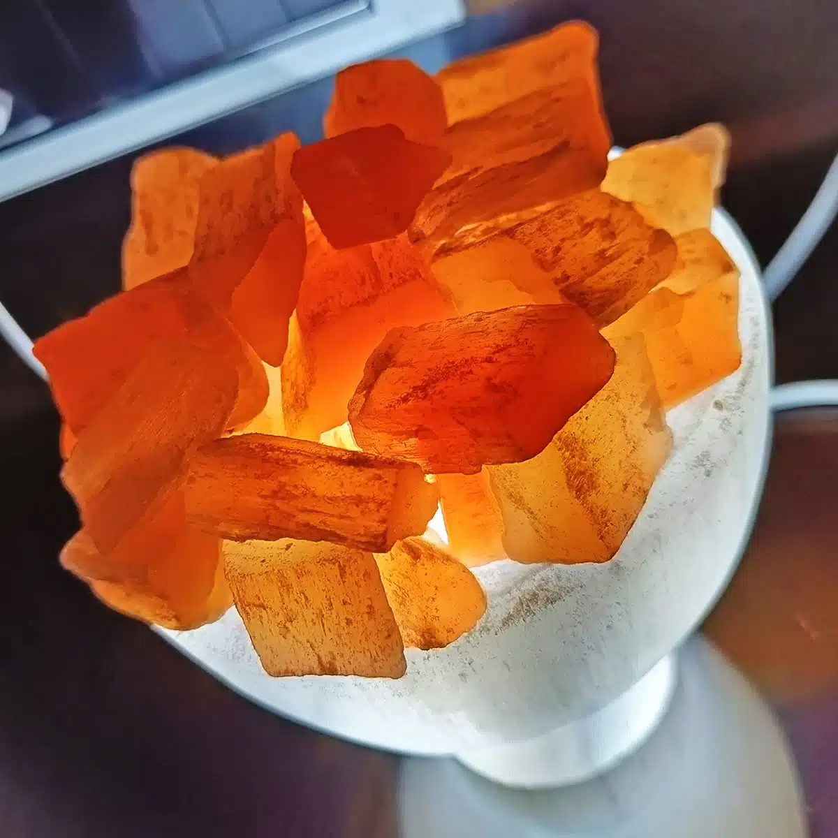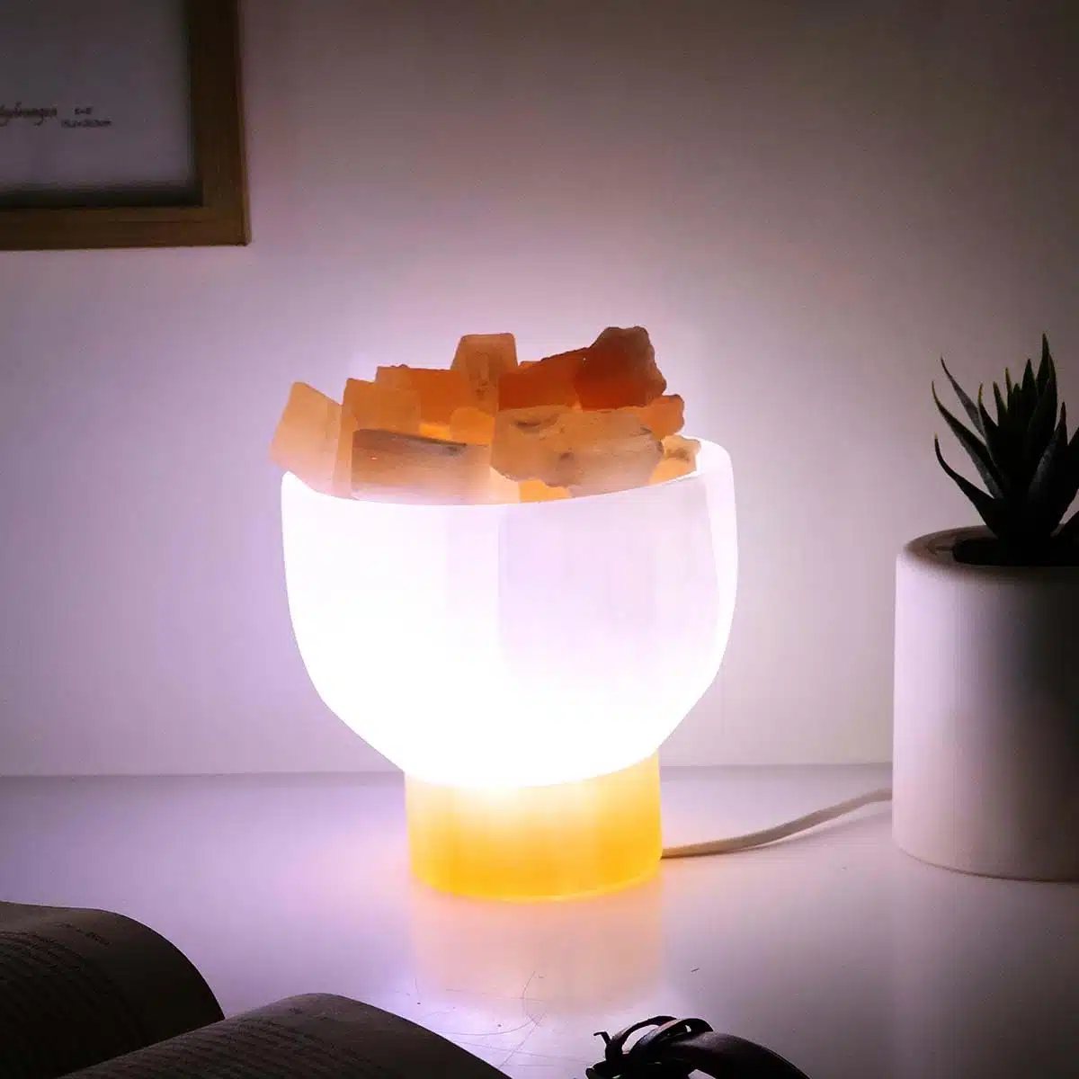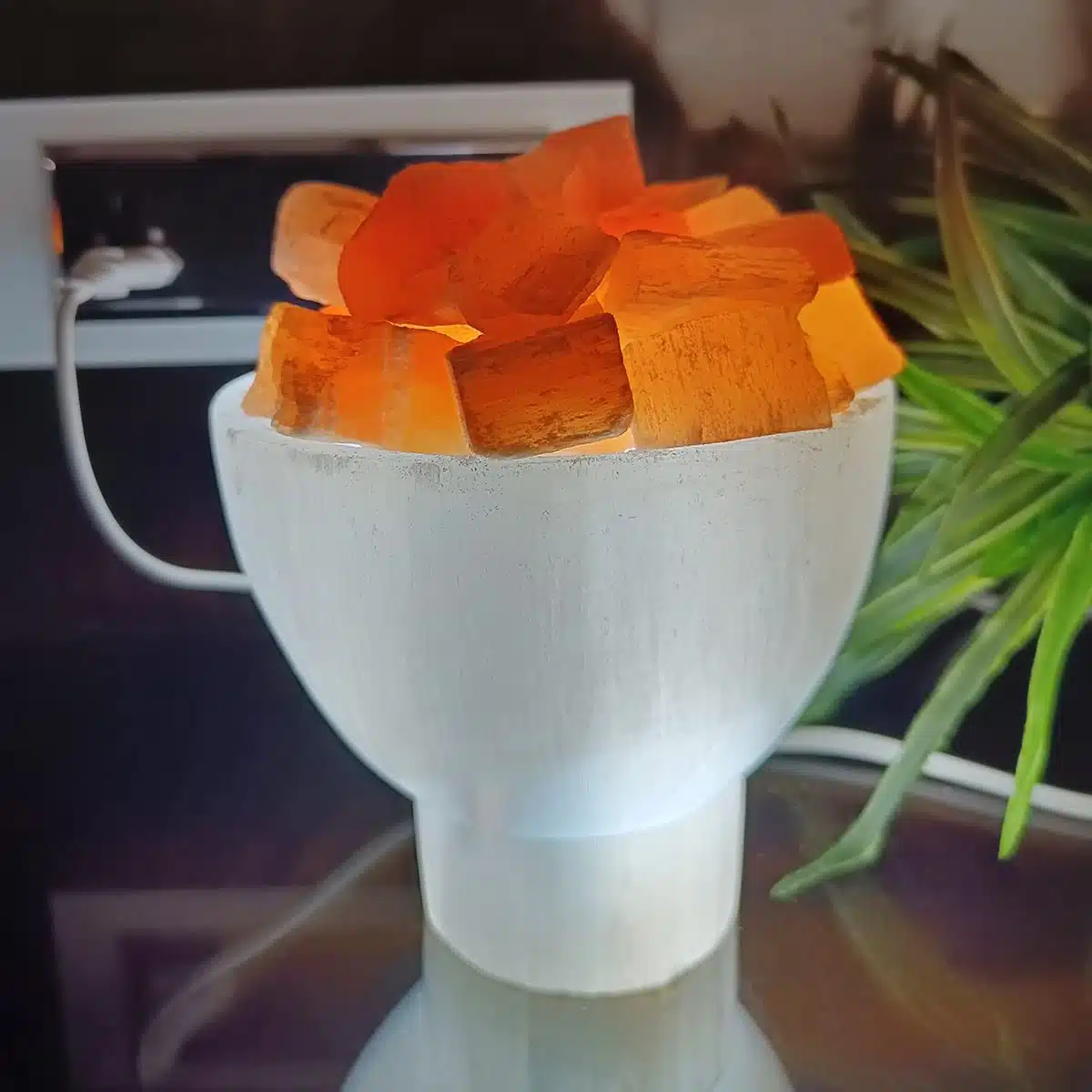 Experience the healing energy of Selenite through this bowl with a Orange Selenite Lamp.