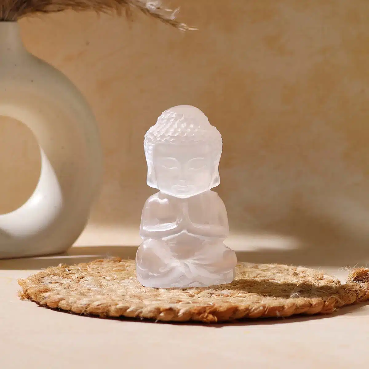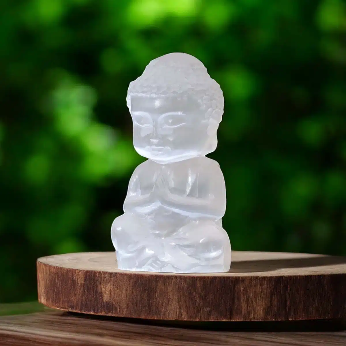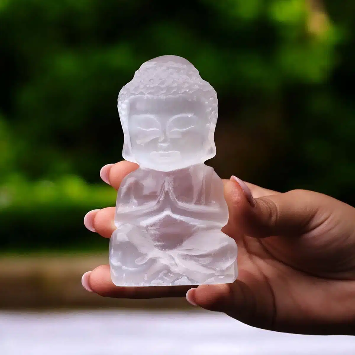 The Buddha carving promotes mindfulness, wisdom, and inner peace. Selenite raises vibration and connects with angelic and divine realms. A perfect companion for meditation, prayer, and intention-setting.