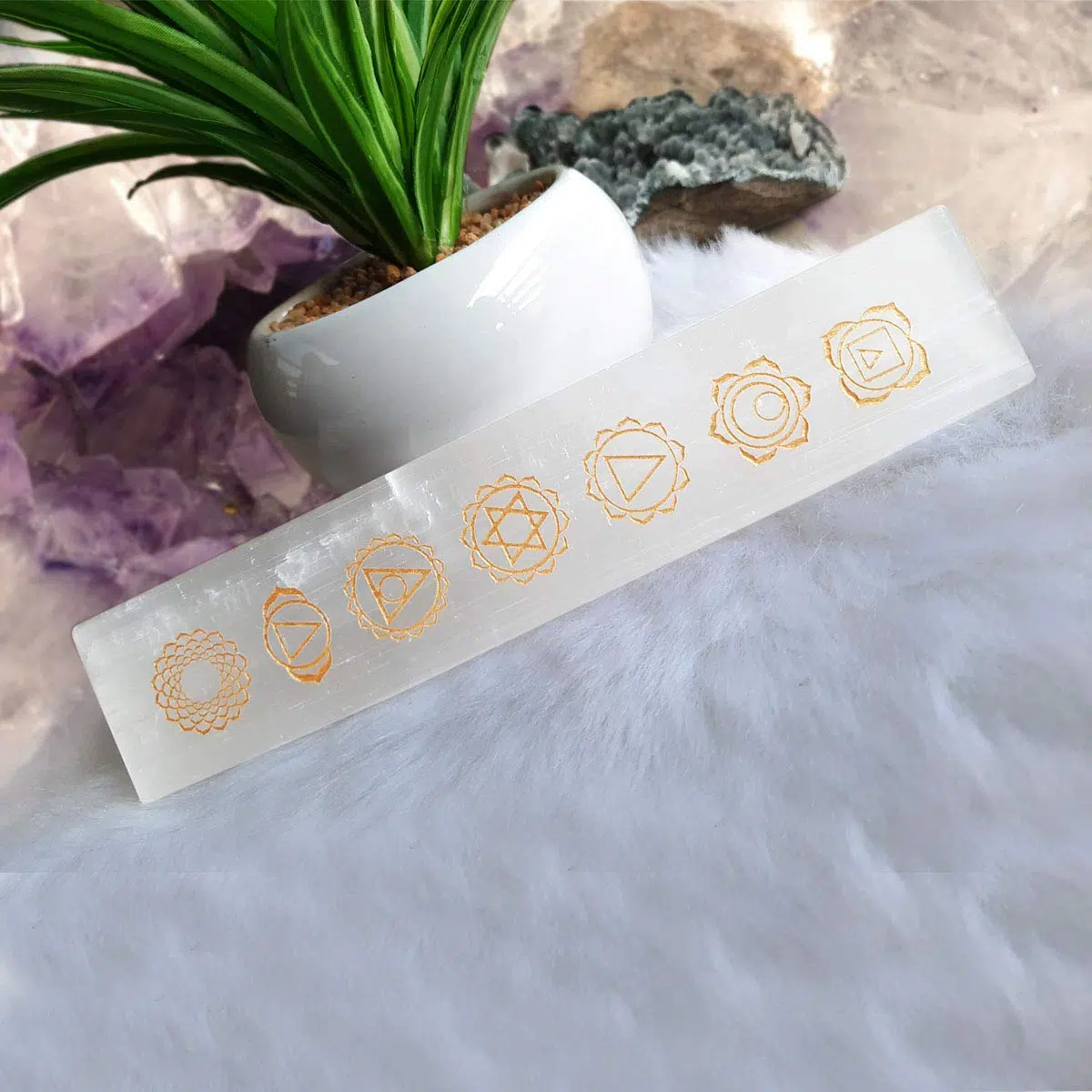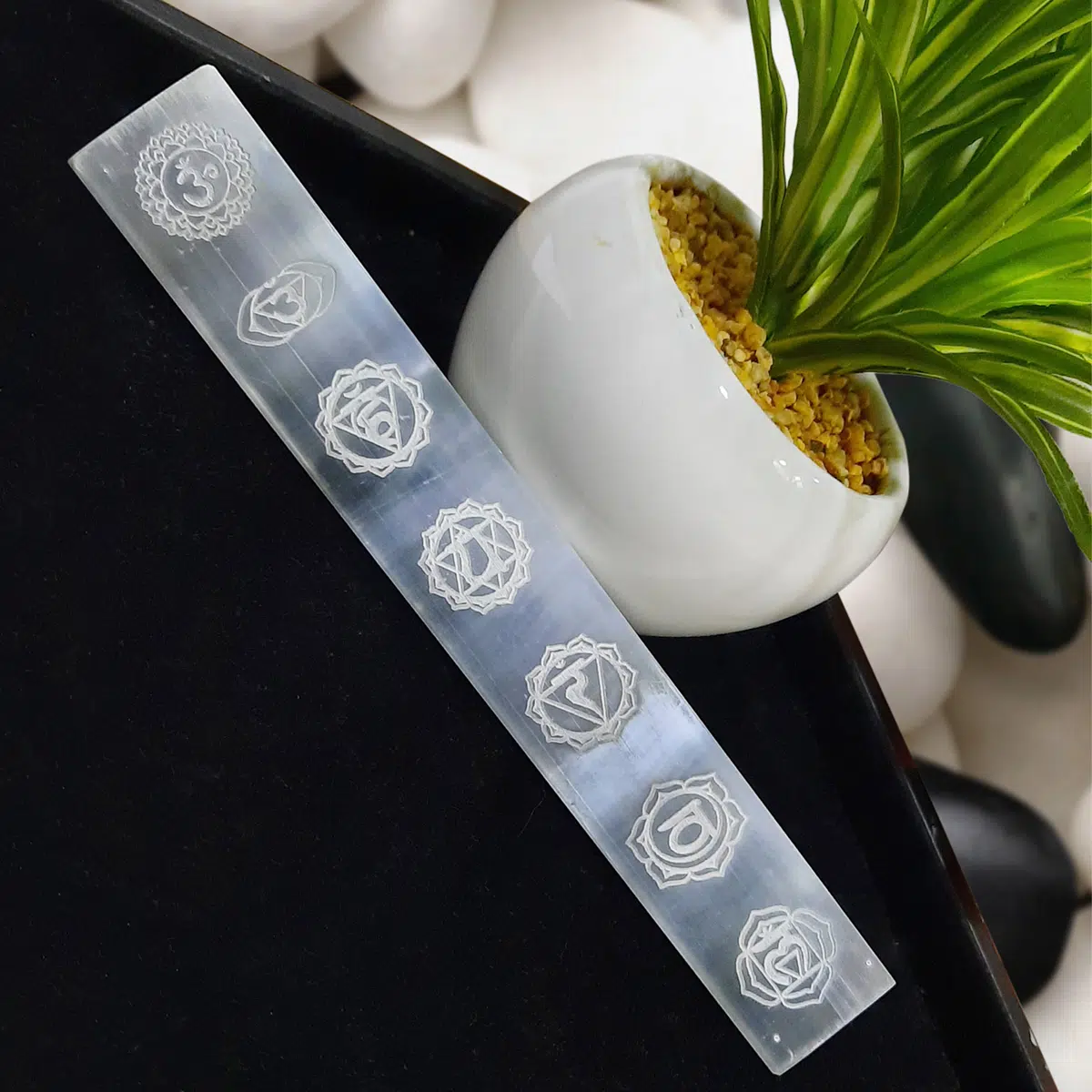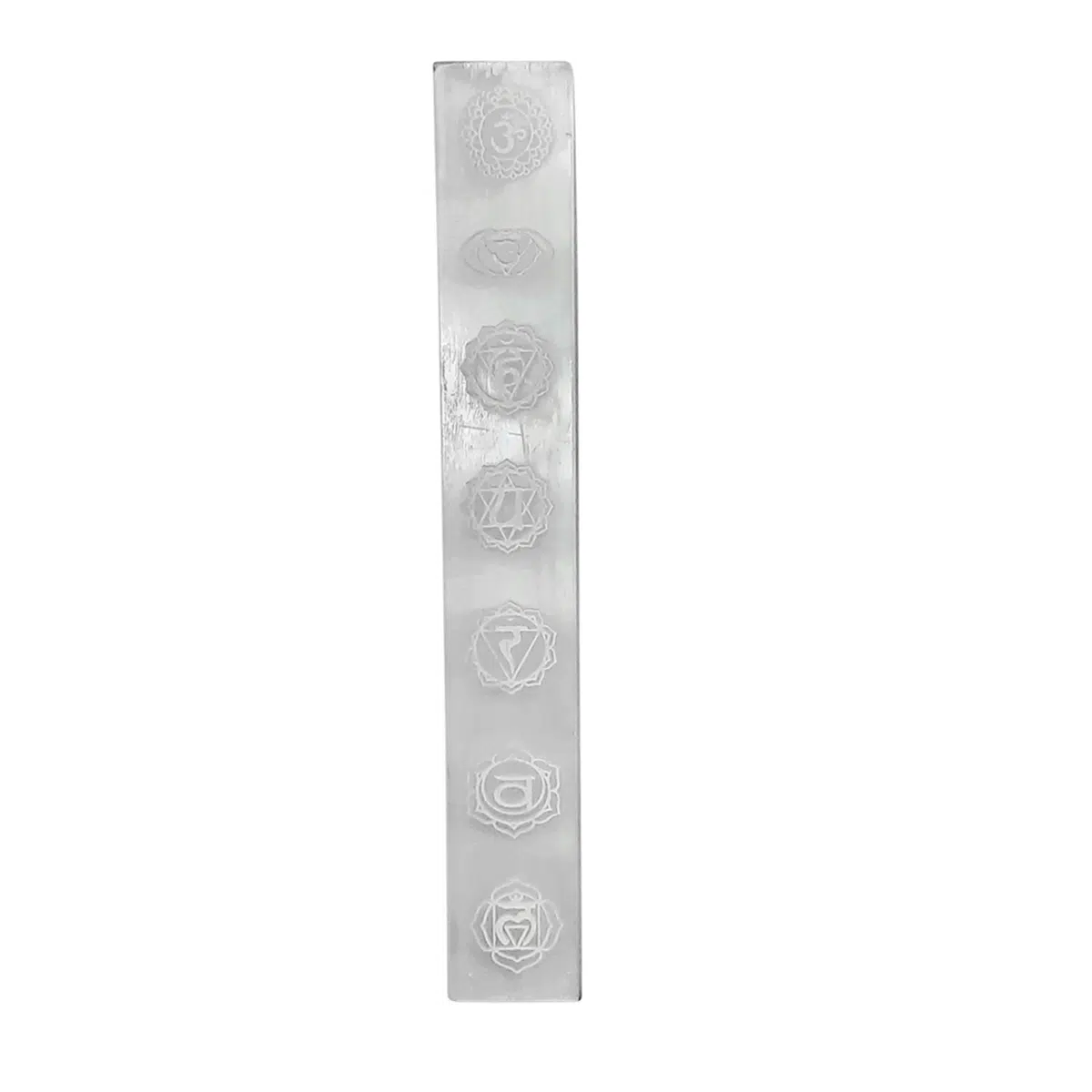 - Products Size : Length 19.5 cm x Width 4 cm x Height 1.3 cm | Color : White | Weight : 236 gm| Selenite Incense Stick Holder carved chakra symbols,Selenite Plate incense holder,Selenite Slab, Selenite charging plate,Made with love, light, and positive energy, cleansed.