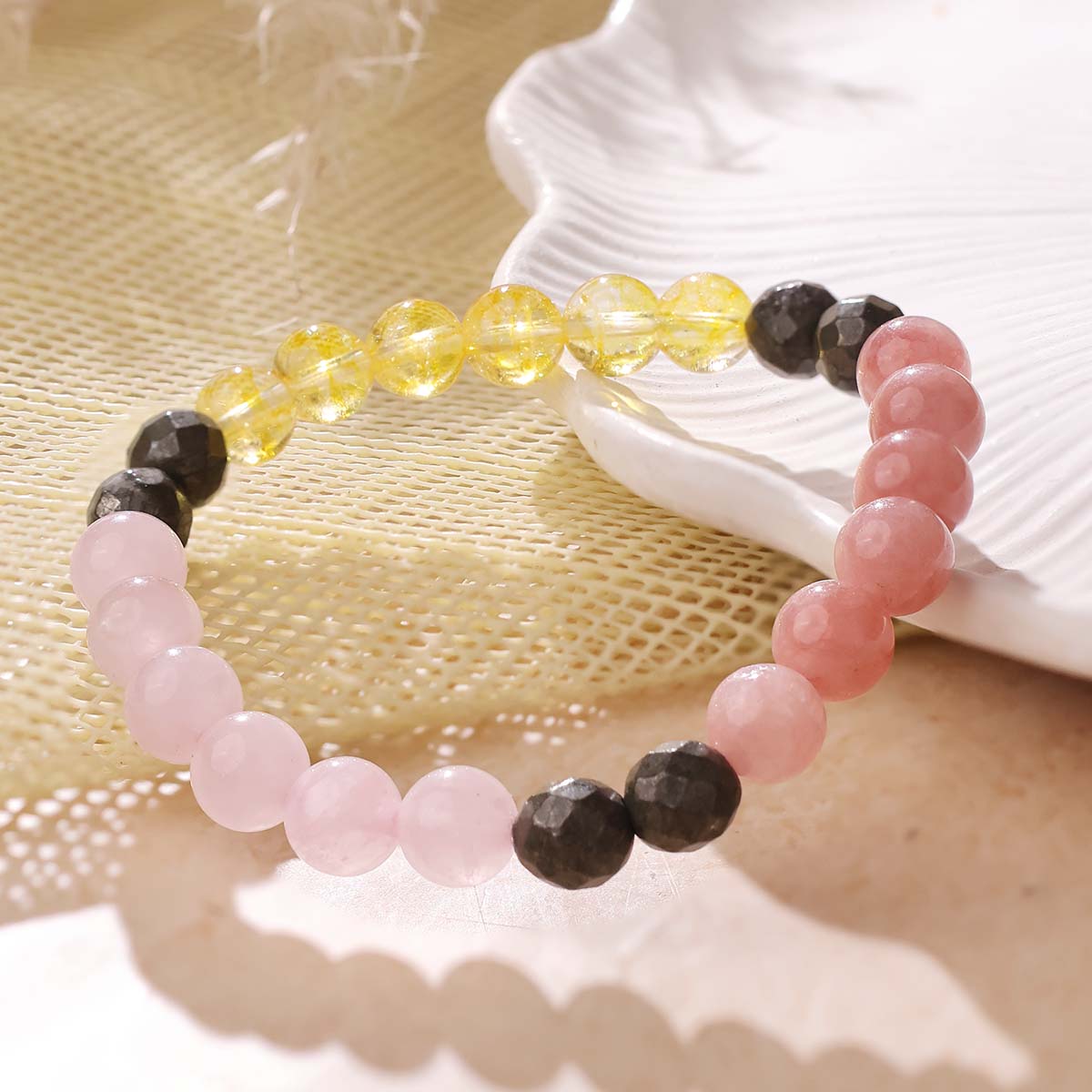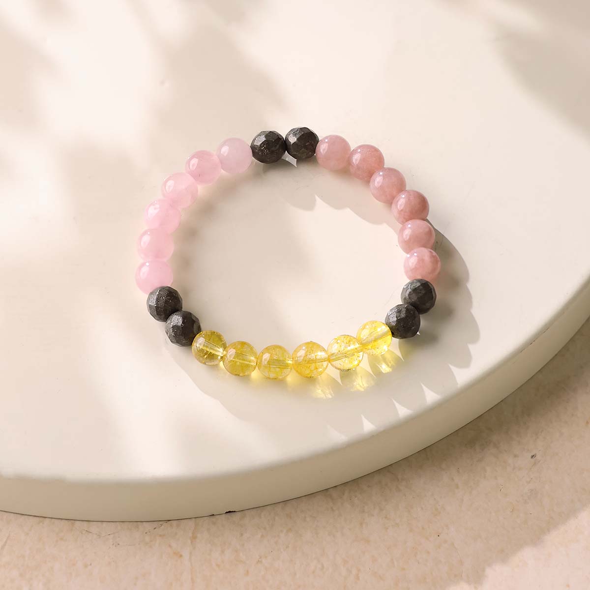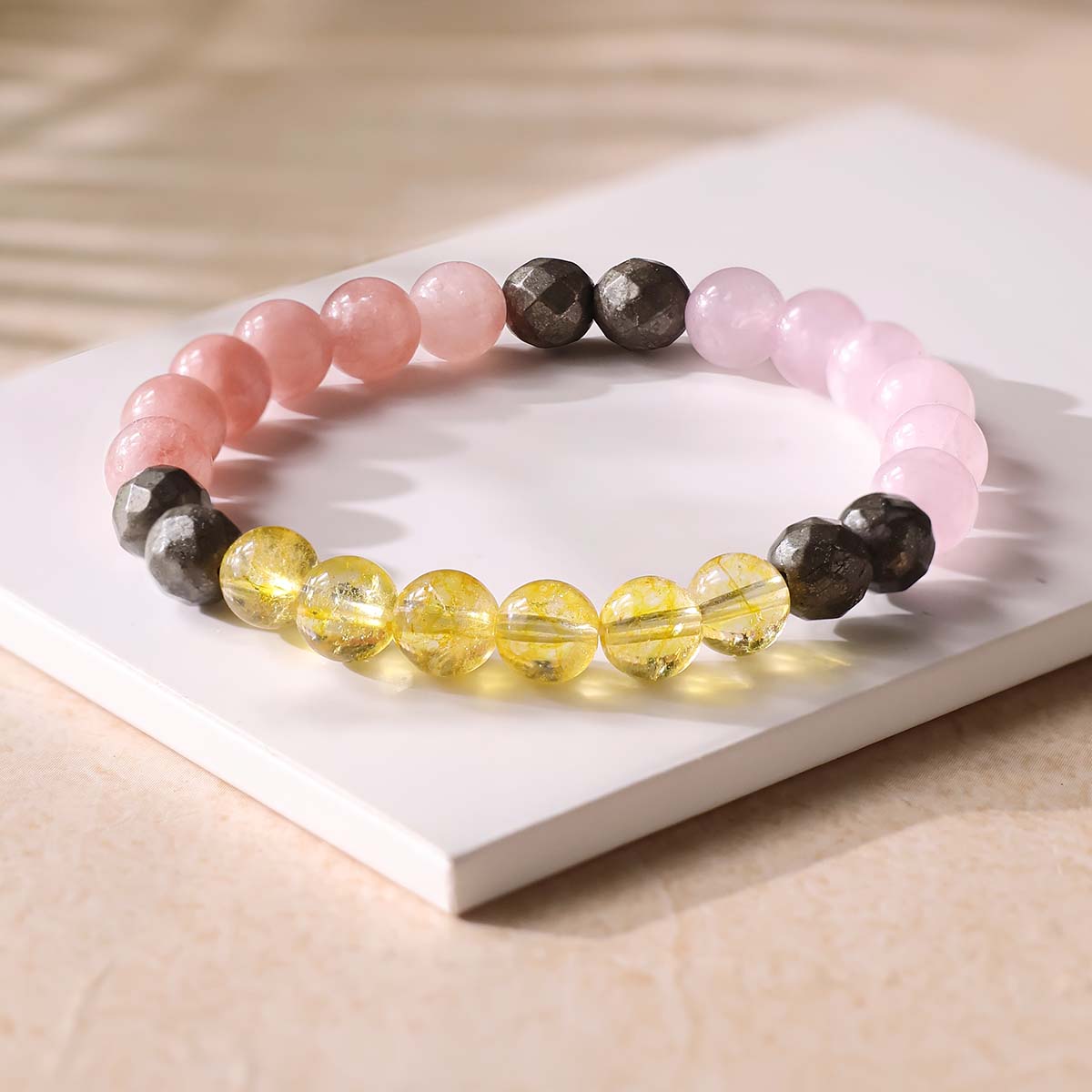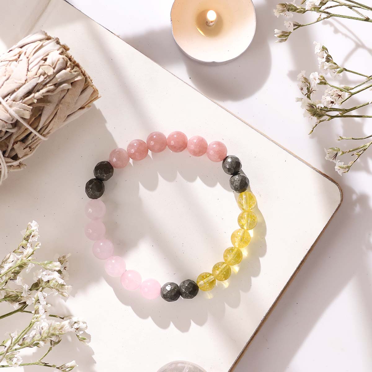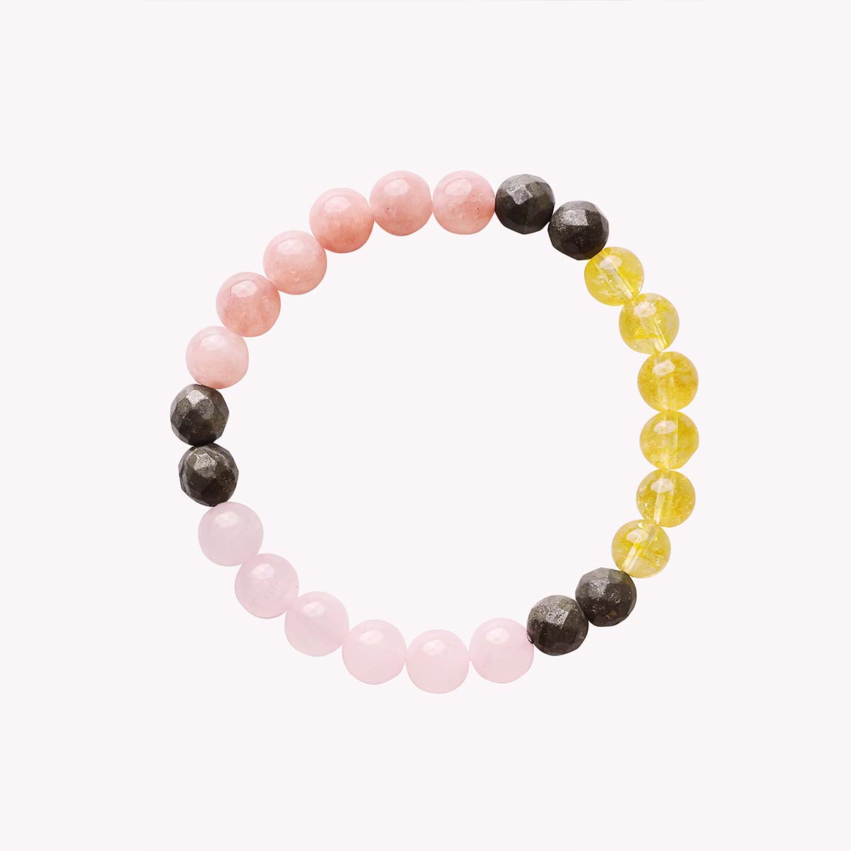 - Rose Quartz: Bracelet features smooth and polished Rose Quartz beads. Rose Quartz is known as the stone of unconditional love and self-acceptance. It promotes self-love, compassion, and a sense of inner peace.