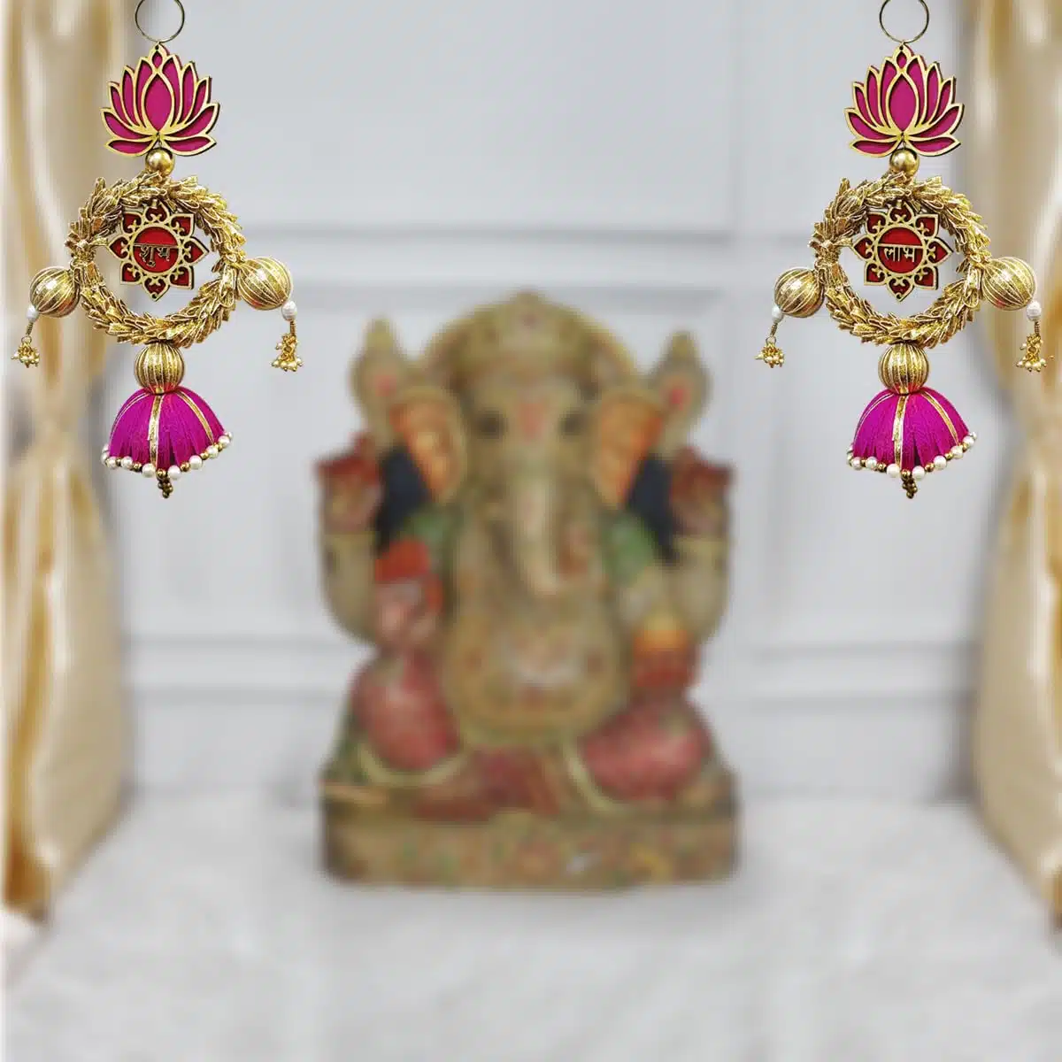 In a culture, no auspicious work is started without the inscriptions of Shubh Labh. These are seen in business ledgers, houses, offices, places of business, etc to attract good luck. Shubh Labh is the sign of a good beginning. It is a symbol of good luck and fortune.Shubh Labh Gives Charm To Your Guests When You Place At The Entrance Of Your Sweet Home During Festivals Or Any Wedding Or Religious Occasion.