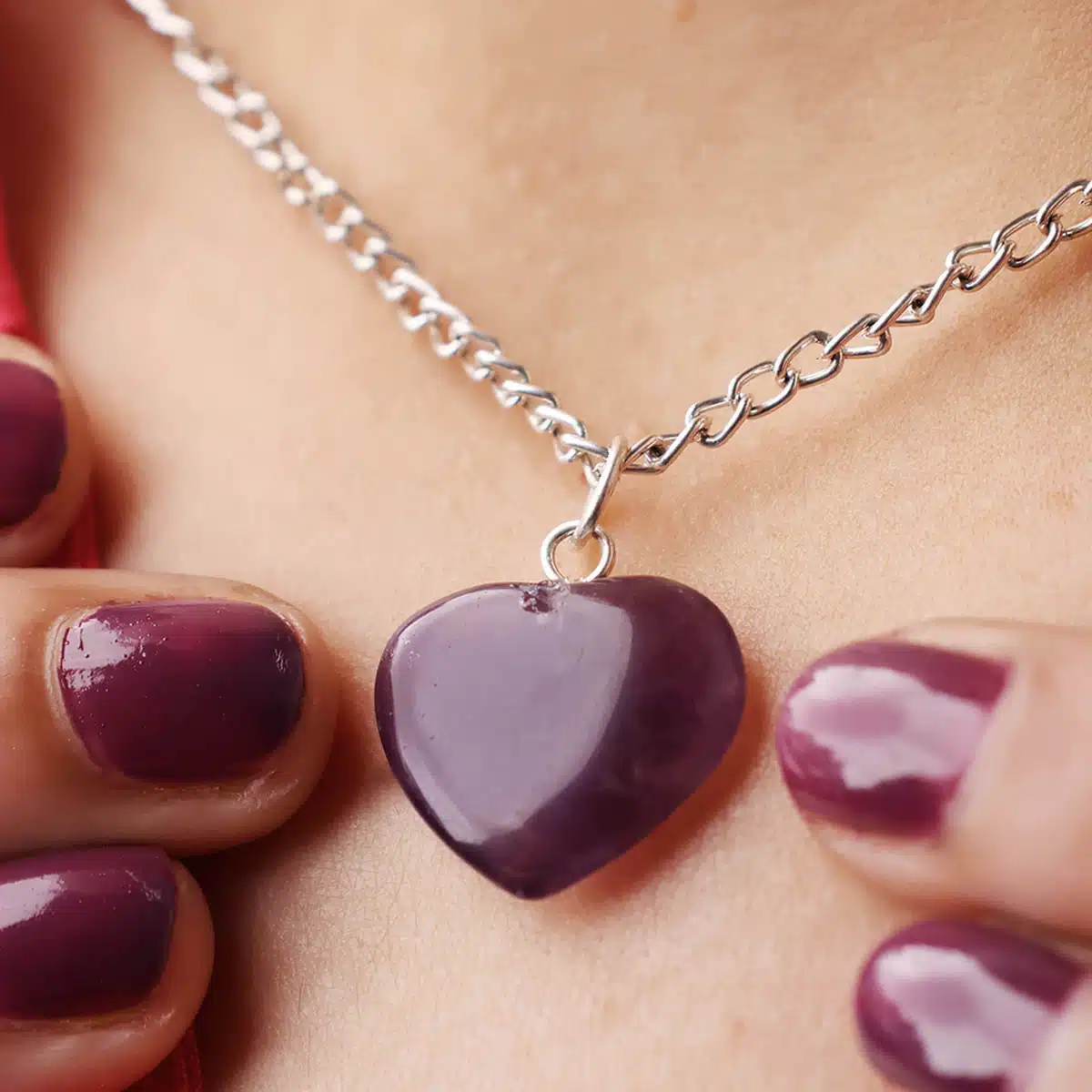 - Crystal Natural Amethyst Heart Pendant, Length: 1.-2 cm, Width: 1-2 cm (Approx), Weight: 3.26 Gram.