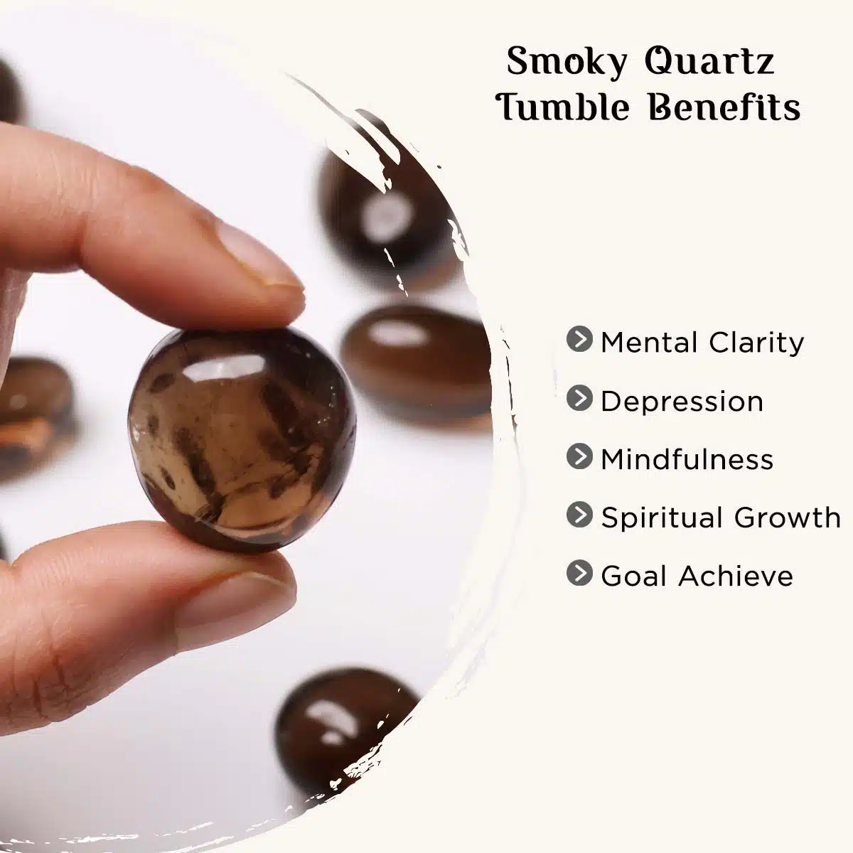 - Smoky quartz crystal stone cleansing the base chakra so that passion can flow naturally. It alleviates nightmares and manifests your dreams.