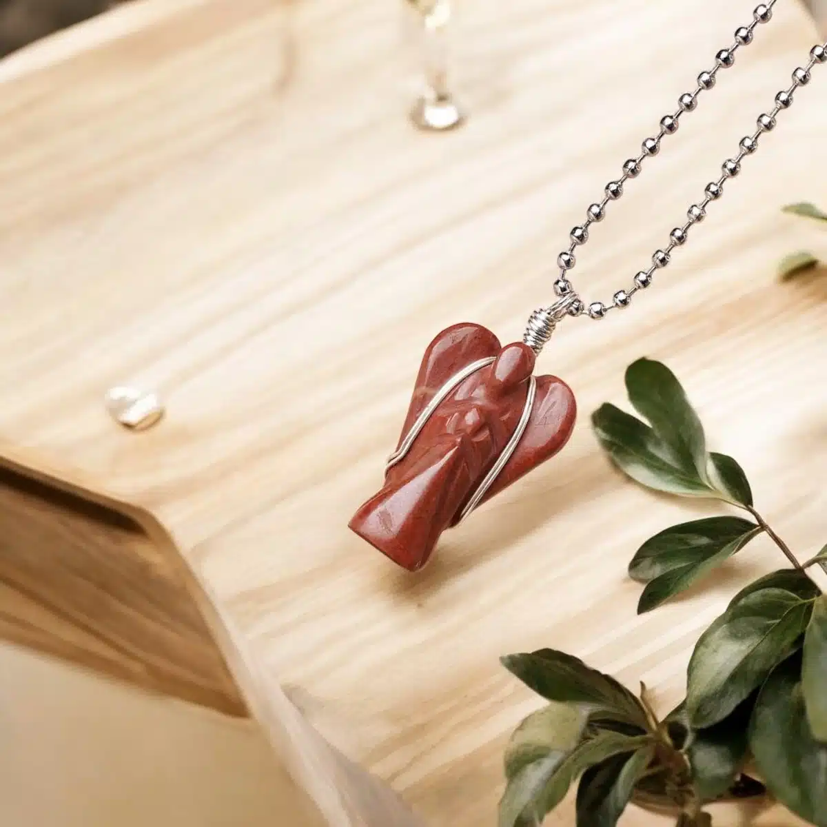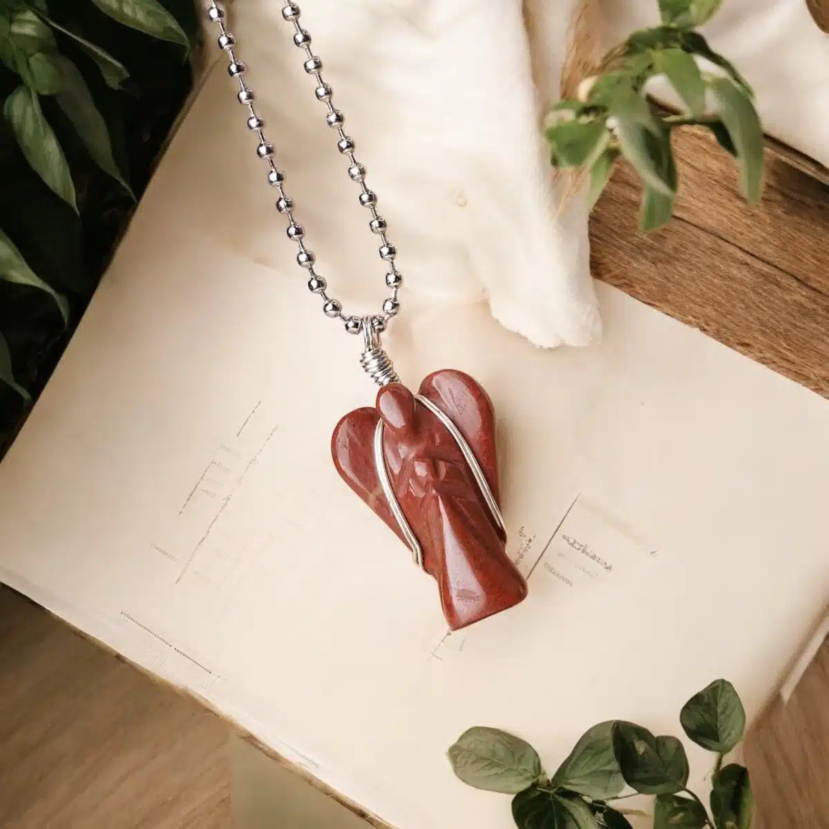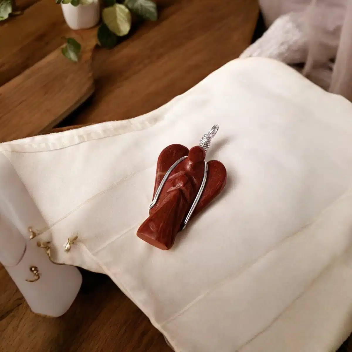 Red Jasper Wire-Wrapped Angel Pendant