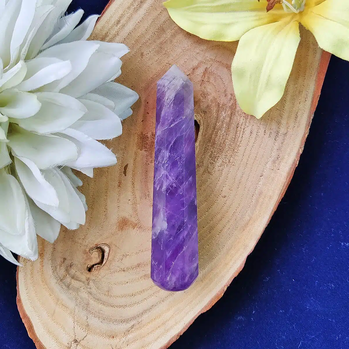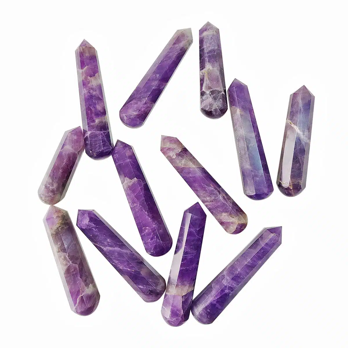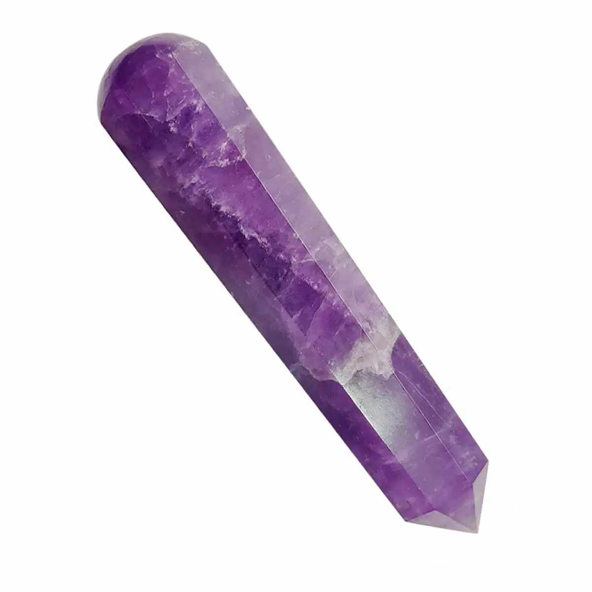 Massage Wands, or crystal healing wands, have long been traditional tools of healers and shamans. They can be used many different ways: as a massage tool, for detecting aura blockages, in Reiki/Seichim, and in ceremonial uses. You can carry them with you, or display them with your collection of other crystals, or place them wherever your need feels most compelling.The natural healing properties of crystals are imparted when used on or near your body. Use your crystal wand to ease tension or pain anywhere in the body, and for treating and releasing trigger points. The point can be used for directing energy toward the area that needs it most.You can place the wand directly on the area to be massaged, either moving it in a circular motion over the area, or using it like a small “rolling pin”, Healing wands work best in direct with skin, but are also effective through clothing.Amethyst is recognized as a stone of spirituality and contentment. It enhances spiritual awareness and promotes a higher state of consciousness. It’s well known for its metaphysical abilities to calm the mind and helps to inspire an enhanced meditative state.Amethyst stimulates the third eye crown and etheric chakras. It helps in enhancing cognitive perception as well as accelerating the development of intuitive and psychic abilities.Its inherent high frequency purifies the aura of any negative energy or attachments and creates a protective shield of light around the body.It was also reputed to control evil thoughts and increase intelligence. It initiates wisdom and greater understanding.