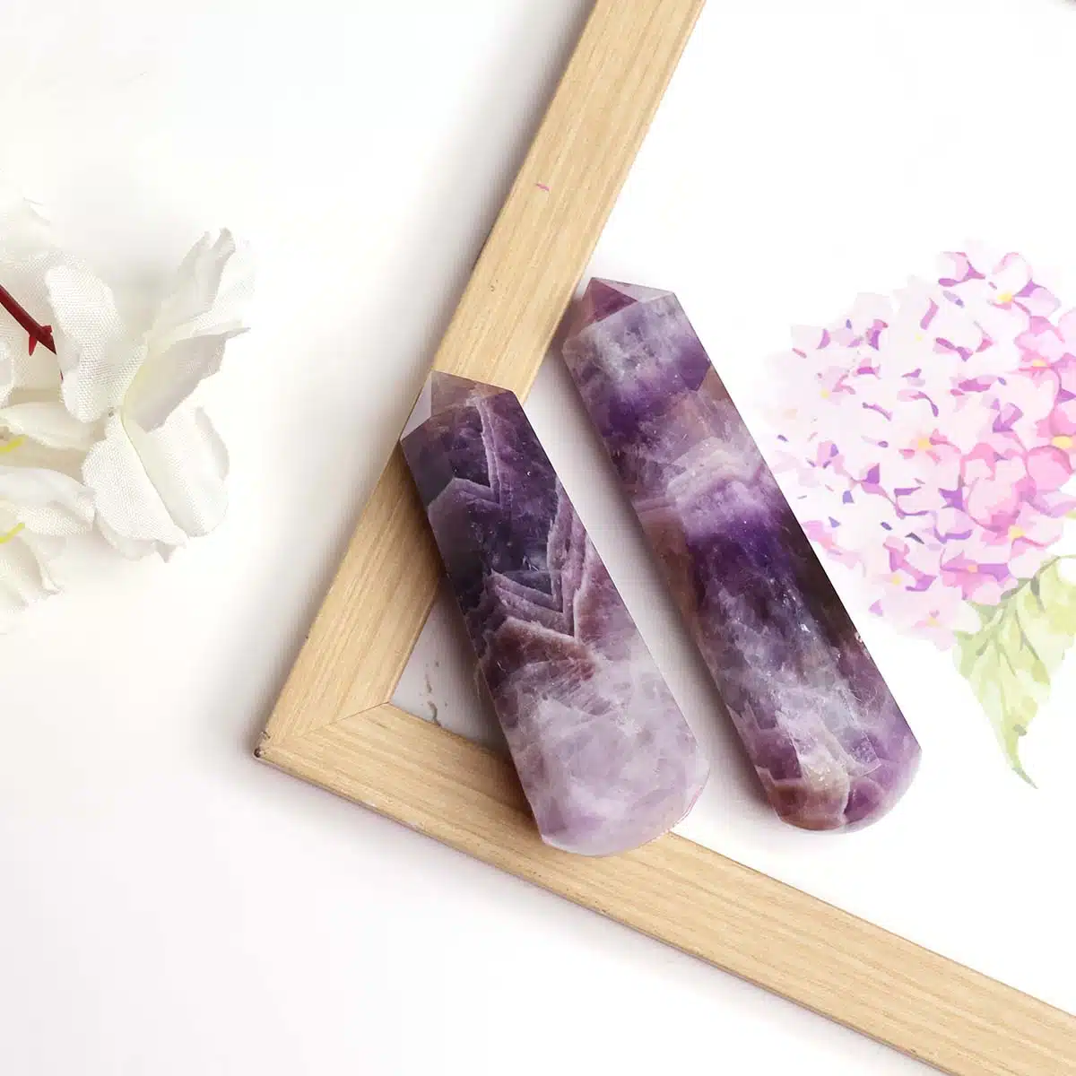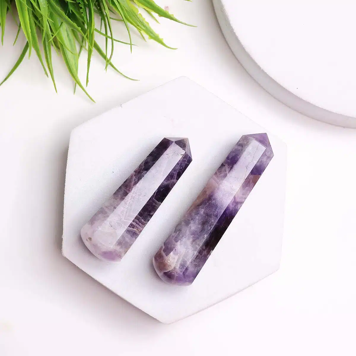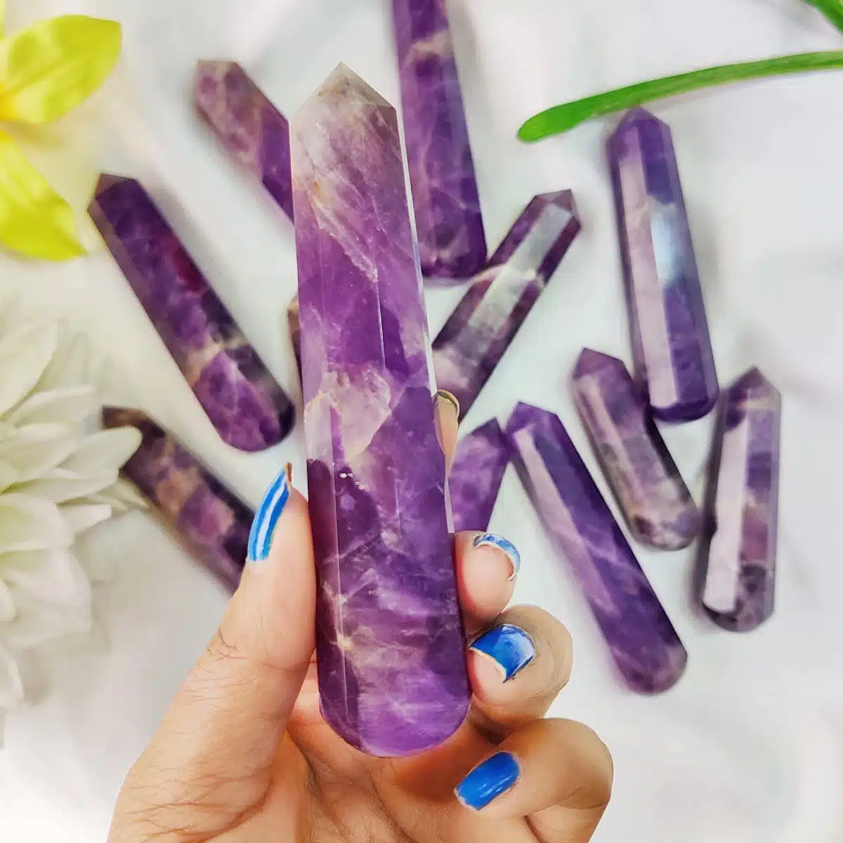 Massage Wands, or crystal healing wands, have long been traditional tools of healers and shamans. They can be used many different ways: as a massage tool, for detecting aura blockages, in Reiki/Seichim, and in ceremonial uses. You can carry them with you, or display them with your collection of other crystals, or place them wherever your need feels most compelling.The natural healing properties of crystals are imparted when used on or near your body. Use your crystal wand to ease tension or pain anywhere in the body, and for treating and releasing trigger points. The point can be used for directing energy toward the area that needs it most.You can place the wand directly on the area to be massaged, either moving it in a circular motion over the area, or using it like a small “rolling pin”, Healing wands work best in direct with skin, but are also effective through clothing.Amethyst is recognized as a stone of spirituality and contentment. It enhances spiritual awareness and promotes a higher state of consciousness. It’s well known for its metaphysical abilities to calm the mind and helps to inspire an enhanced meditative state.Amethyst stimulates the third eye crown and etheric chakras. It helps in enhancing cognitive perception as well as accelerating the development of intuitive and psychic abilities.Its inherent high frequency purifies the aura of any negative energy or attachments and creates a protective shield of light around the body.It was also reputed to control evil thoughts and increase intelligence. It initiates wisdom and greater understanding.
