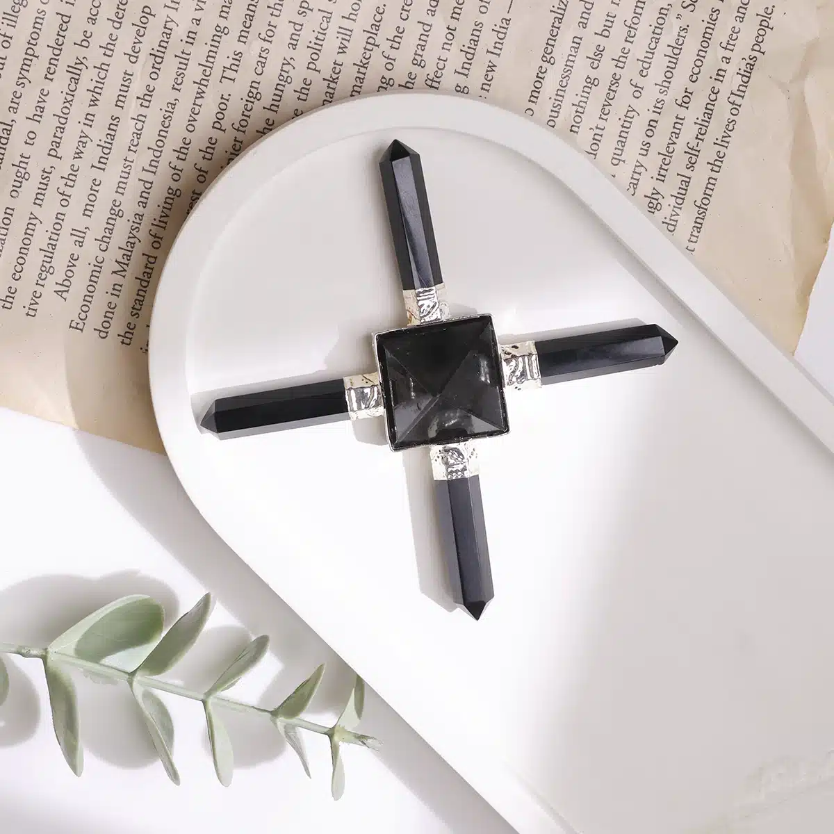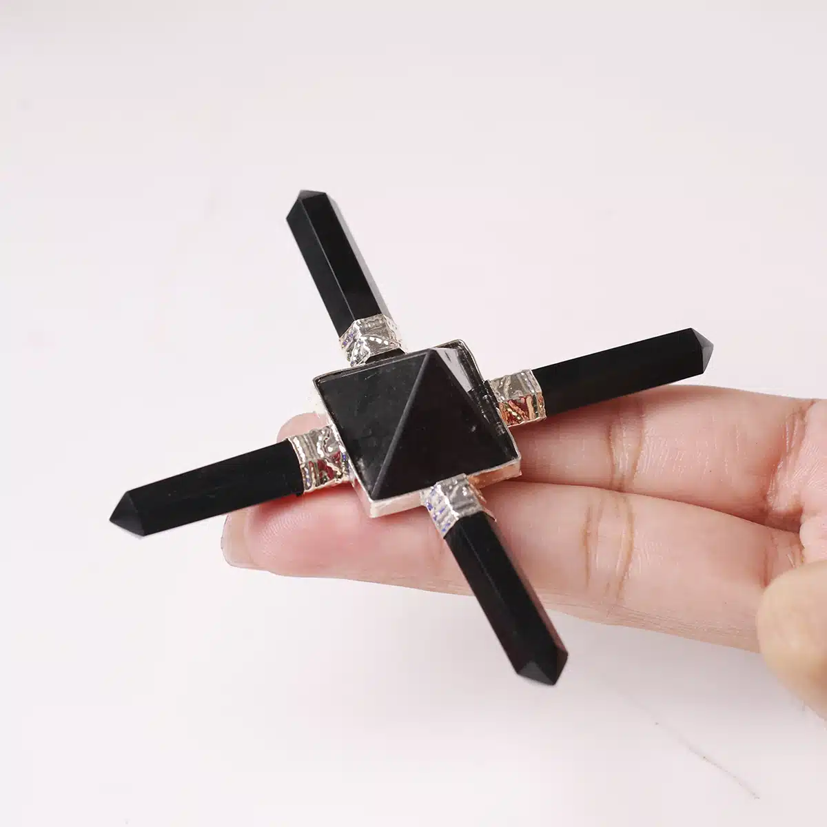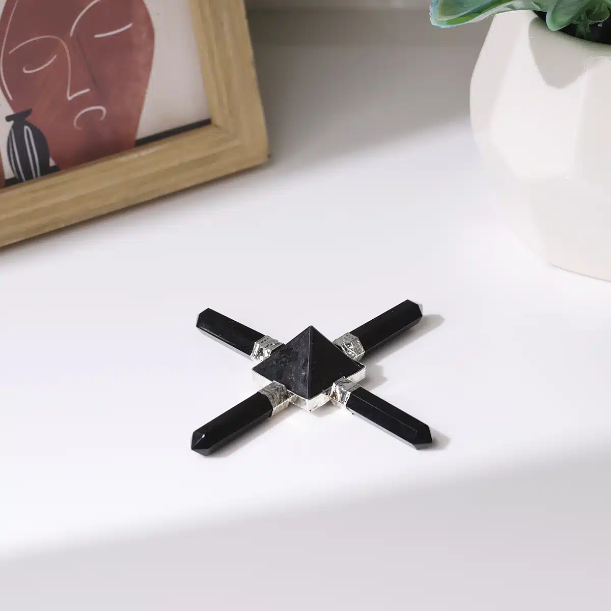 It is a powerful stone for protection against negative energy of all kind as well as being a strong spiritual grounding stone. - Products Size : Length 10 cm x Width 10 cm x Height 2 cm | Color :Black| Weight : 36 GM|Place them close to this generator for energy clearance. Each pencil has a gemstone cab corresponding to its Chakra.Place energy generators in your home or workspace to protect, activate and transmute energy.We recommend cleansing your crystals before using them in salty cold running water. Due to the nature of gemstones crevices and cracks may be visible, which is what makes every stone unique.