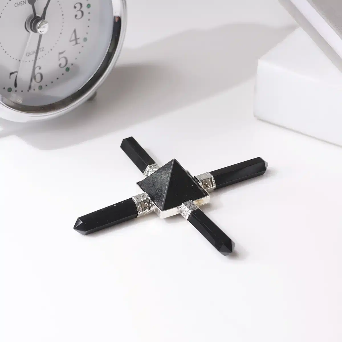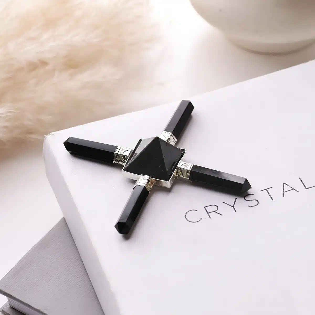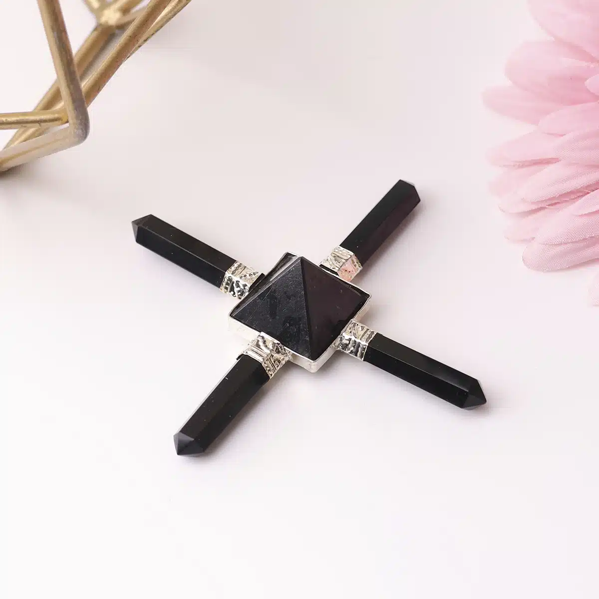 It is a powerful stone for protection against negative energy of all kind as well as being a strong spiritual grounding stone. - Products Size : Length 10 cm x Width 10 cm x Height 2 cm | Color :Black| Weight : 36 GM|Place them close to this generator for energy clearance. Each pencil has a gemstone cab corresponding to its Chakra.Place energy generators in your home or workspace to protect, activate and transmute energy.We recommend cleansing your crystals before using them in salty cold running water. Due to the nature of gemstones crevices and cracks may be visible, which is what makes every stone unique.