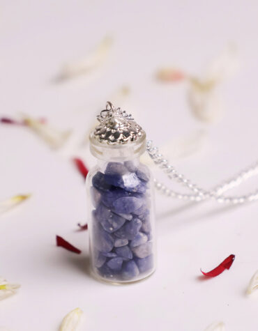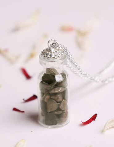 - A charming pendant, featuring lots of Tiger Eye chips inside an attractive corked bottle.