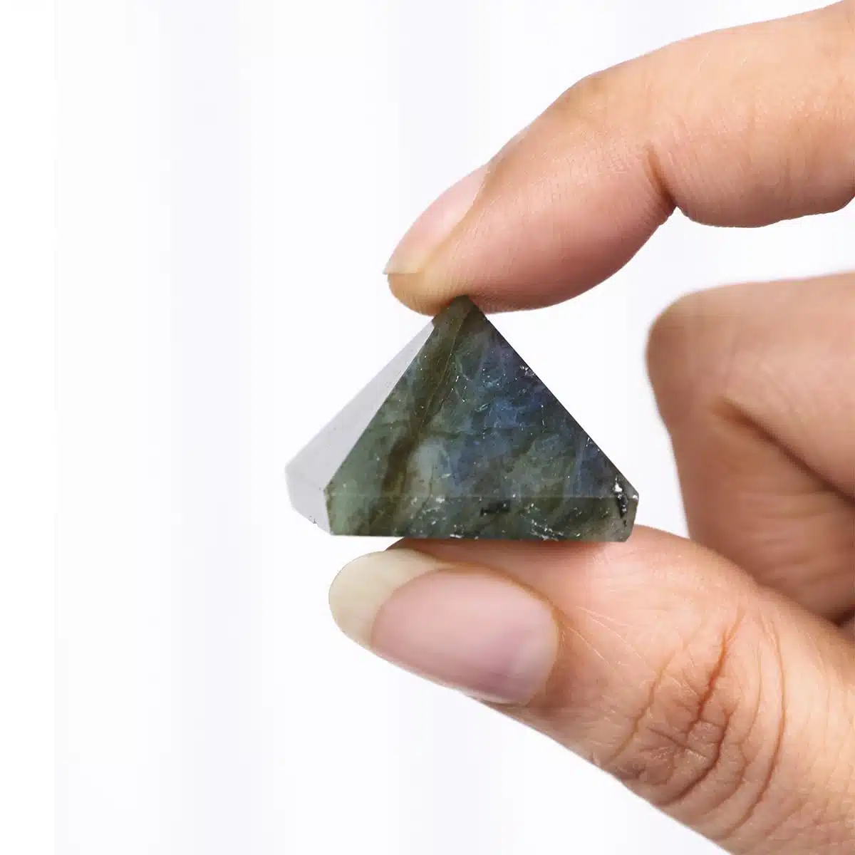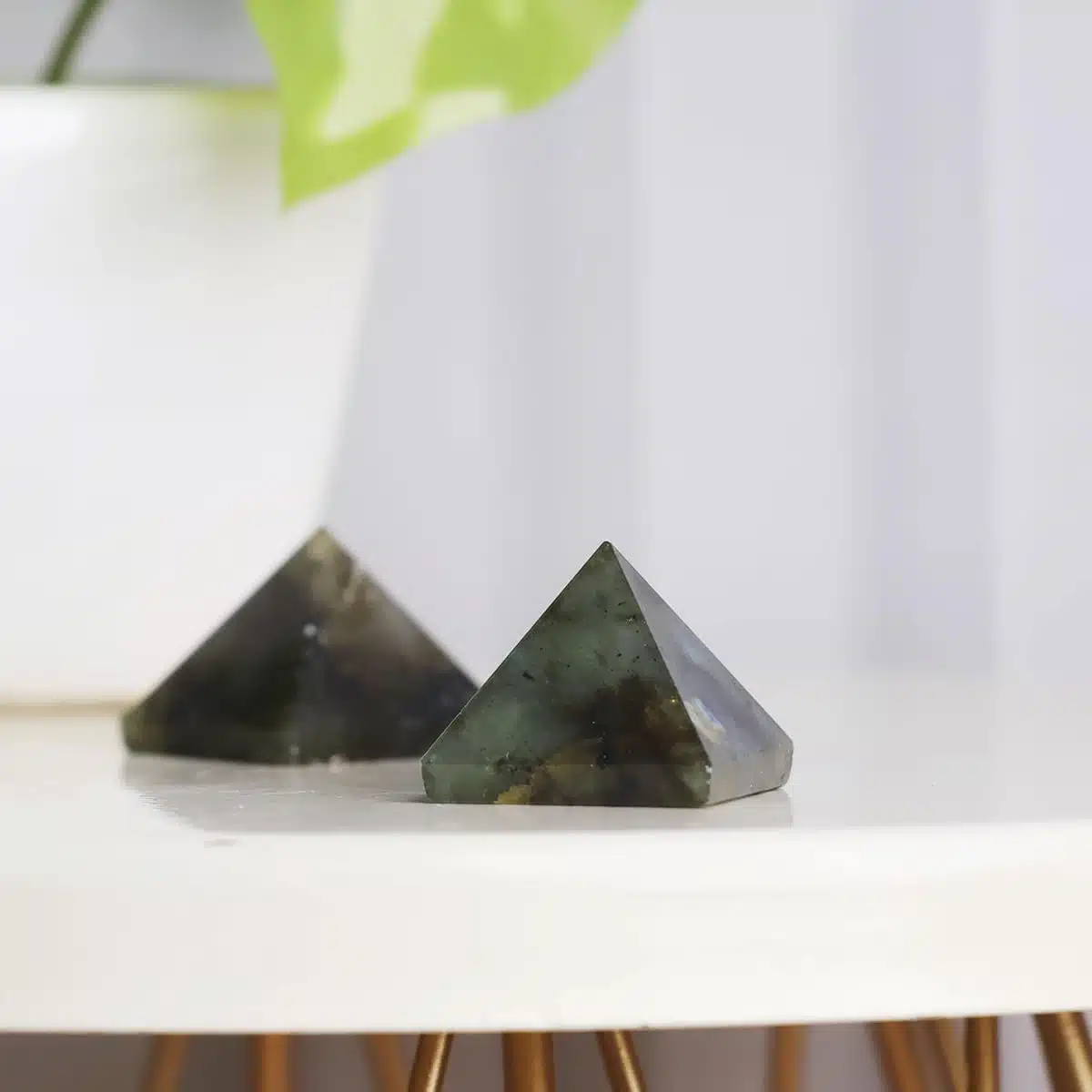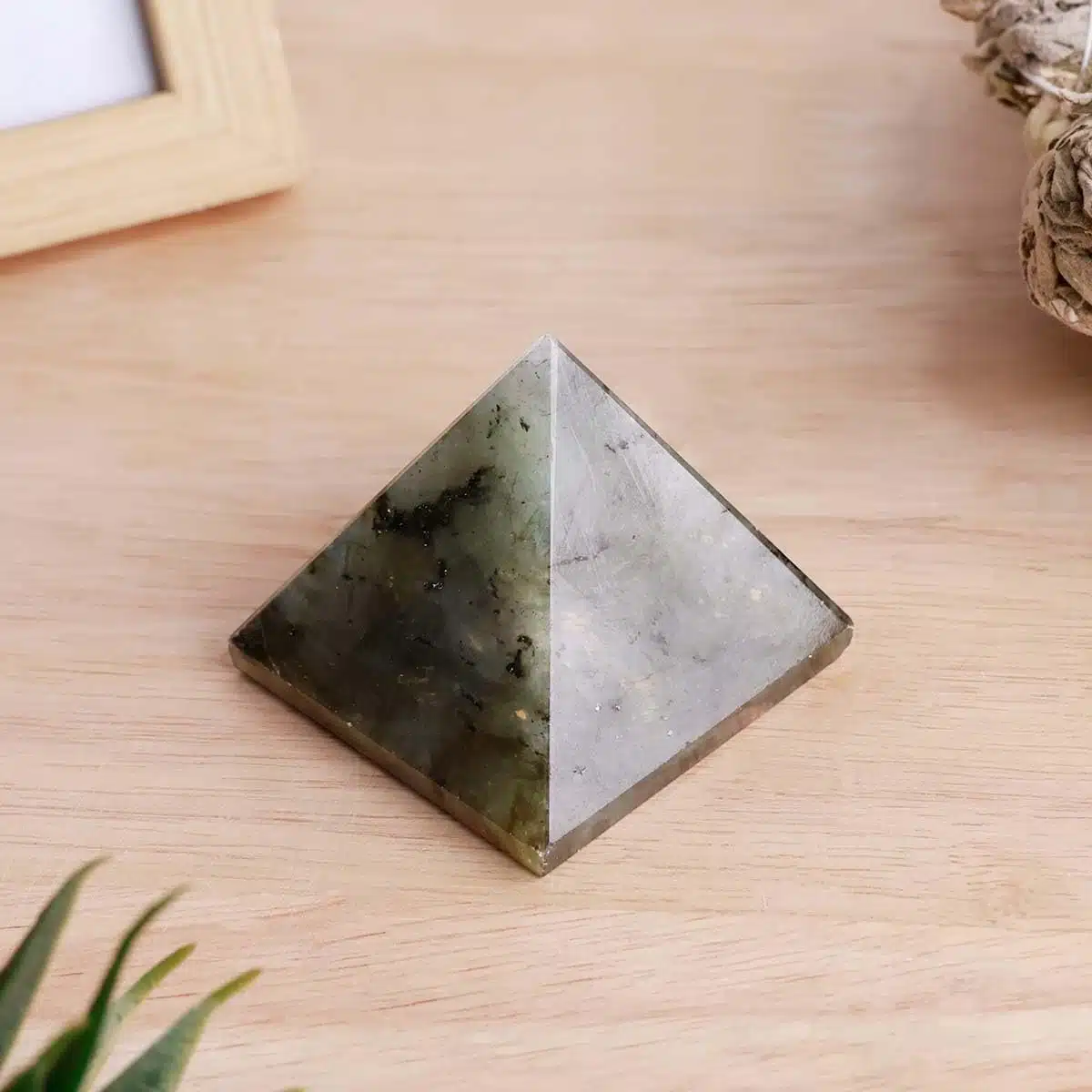 - A pyramid shape is ideal for releasing the beauty and properties of Labradorite. The tapered shape is said to focus and gently release the energy of crystals and is a wonderful addition to any crystal collection.Pyramids have an ability to amplify and focus the energy of one s intention. The Sacred Geometry inherent within any pyramid s design is what gives it the power within. These Labradorite Pyramids can be used to balance appropriate Chakra & for meditation.