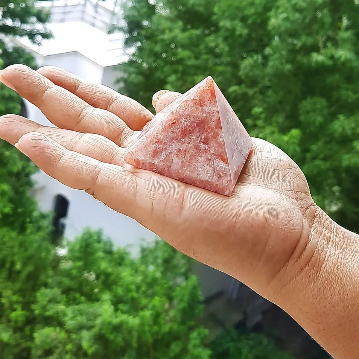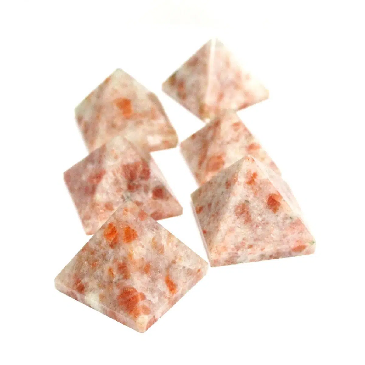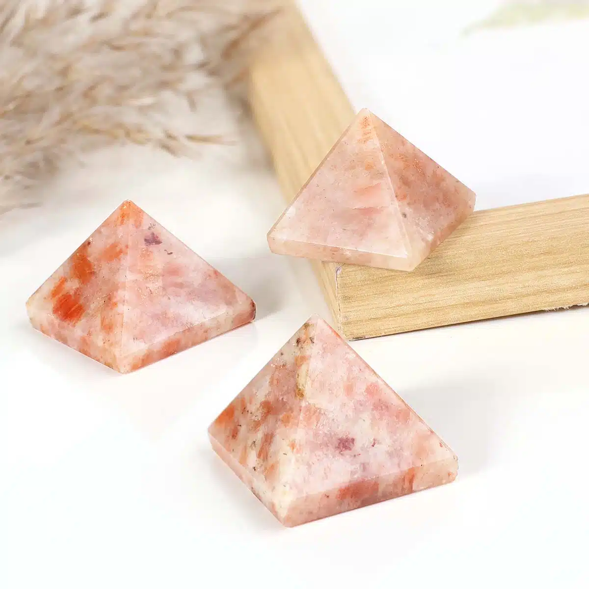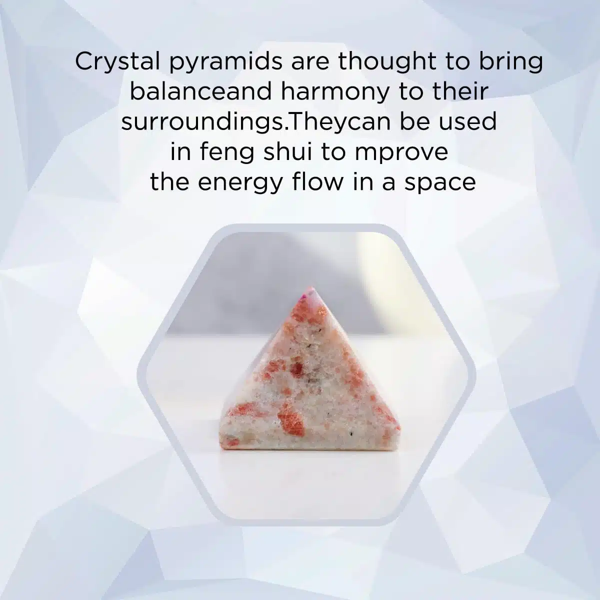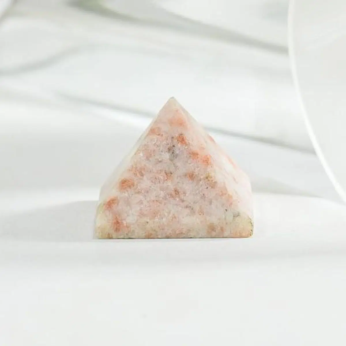 - Products Size : Length 4.5 cm x Width 5 cm x Height 4.5 cm | Weight : 100-150 gm|Color : Orange.You can place it in living room, children’s room, office, car, bring you peace.Sunstone Pyramid derives its power from the sacred geometry inherent in the three sided form. The most powerful area in a pyramid is in the center, near the apex, so it can be helpful to focus your intention on this spot.