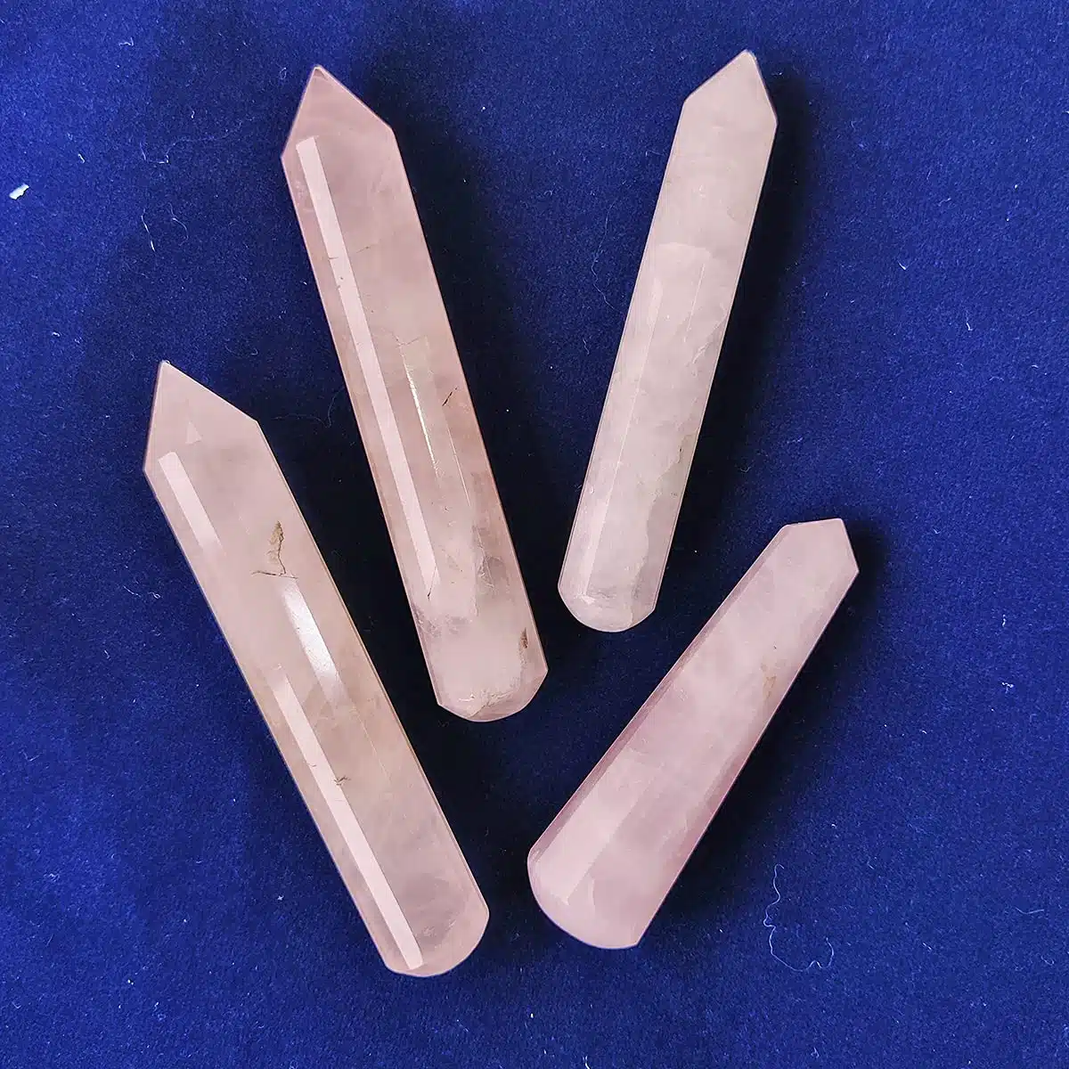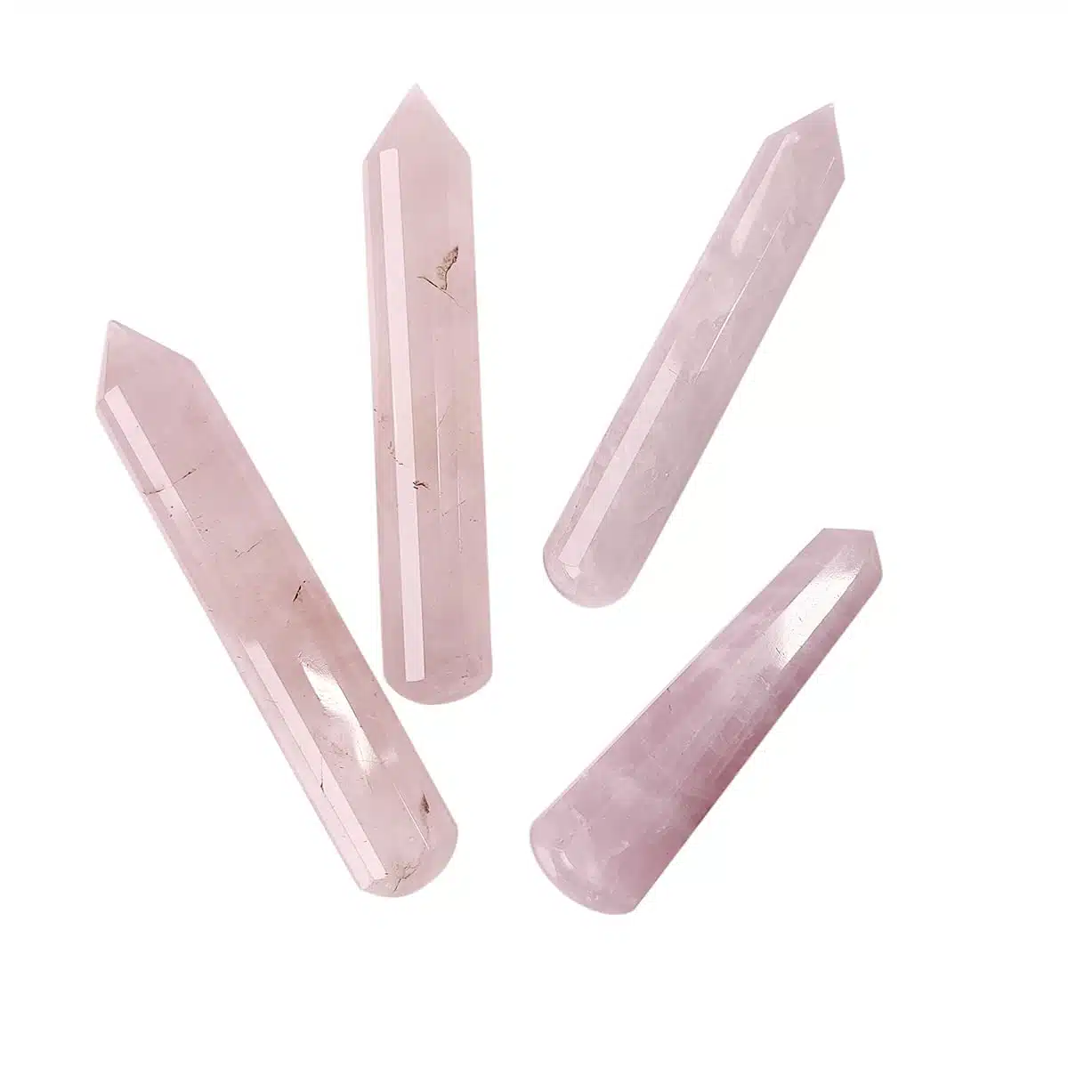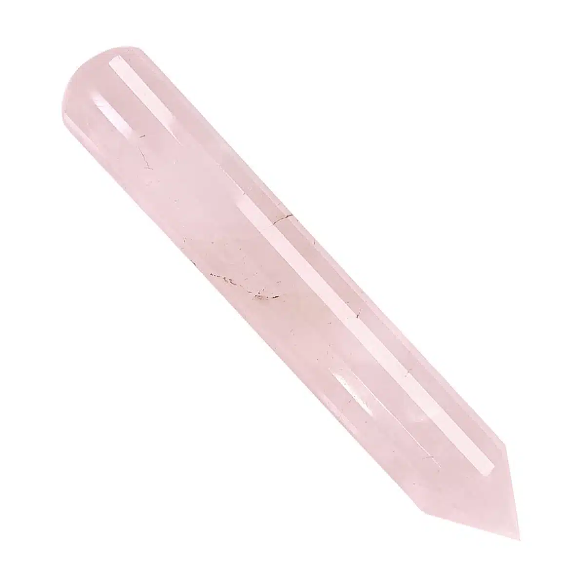 - These cut and polished,Rose Quartz Massage Wands have a pretty pink color.These wands have straight sides and a polished, rounded end. Wands are designed to be used with massage therapy, reflexology and acupressure. Massage wands are either rounded at both ends with one end wider than the other, or they have one rounded and one pointed end which would be great for massage or directing energy with the pointed end.