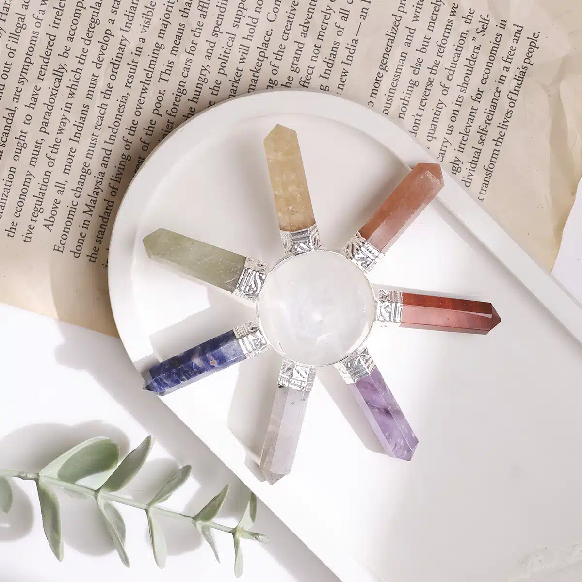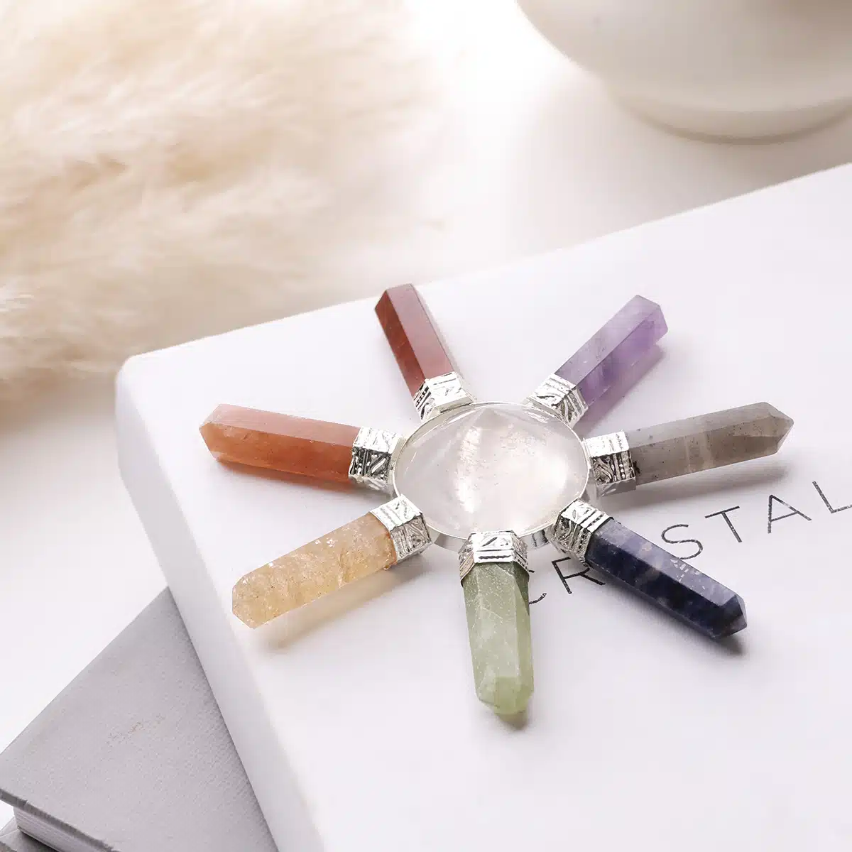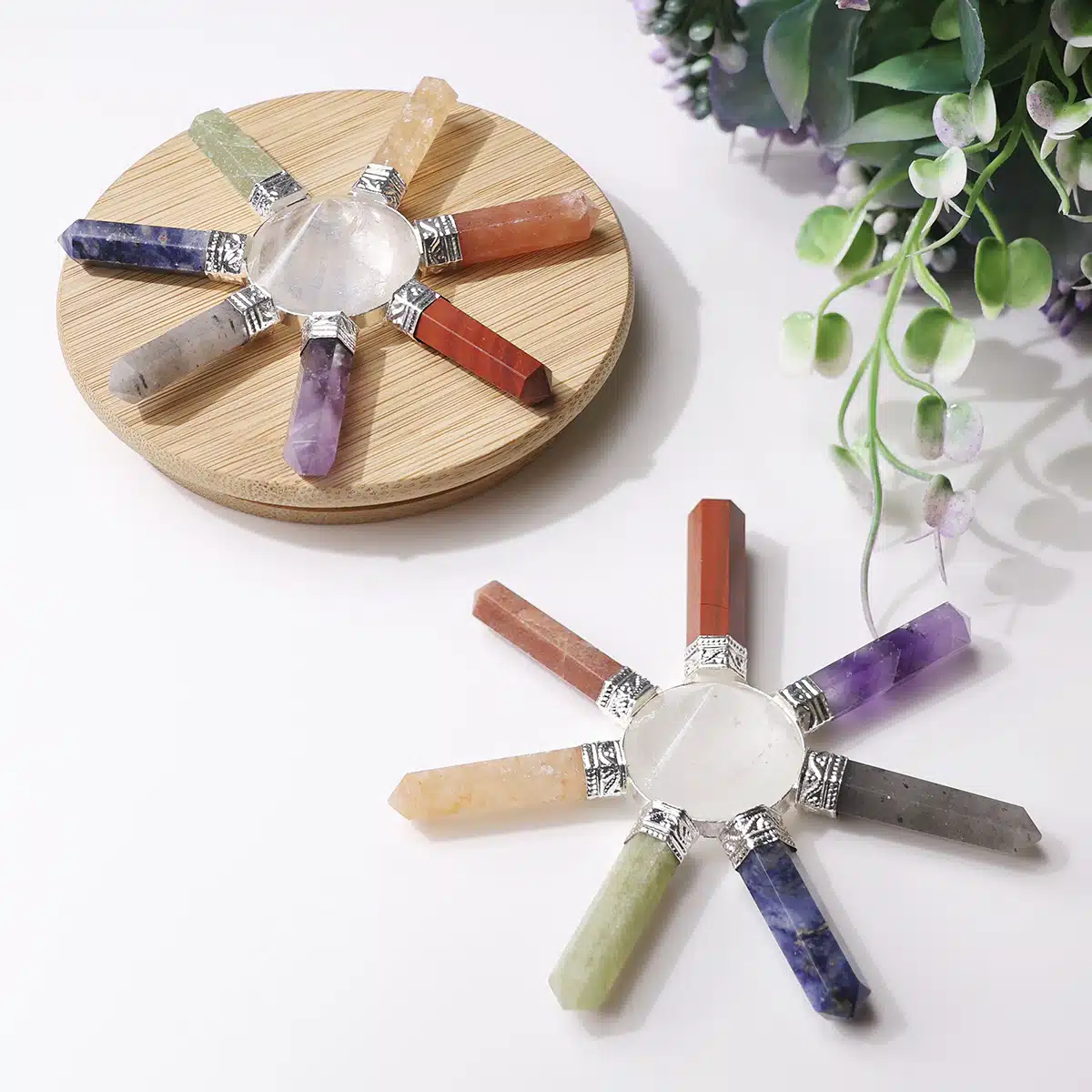 - Seven Chakra improves intellect power, creativity and self-respect. It brings good luck to your life. Enhance the emotional and physical balance and remove the fear and anxiety.Created with natural crystal stones, these stunning crystals s have twisted metal branches and feature a pretty wooden base with crystal stones attached.