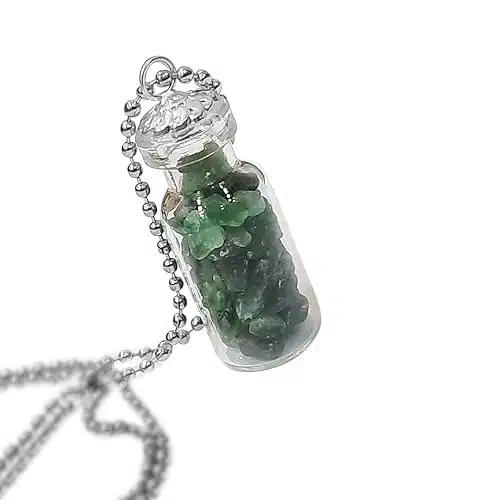 - Green Jade Bottle Chips Pendants are dark green small pieces of stones under silver capped transparent bottle. It releases the negative thoughts and soothes the mind.Channel The Crystal Healing Properties By Wearing This Jade Bottle Pendant, Feel The Intense Magnetic Light Filling Your Spirit With Courage. Nuture Much More Energetic Properties With This stone.