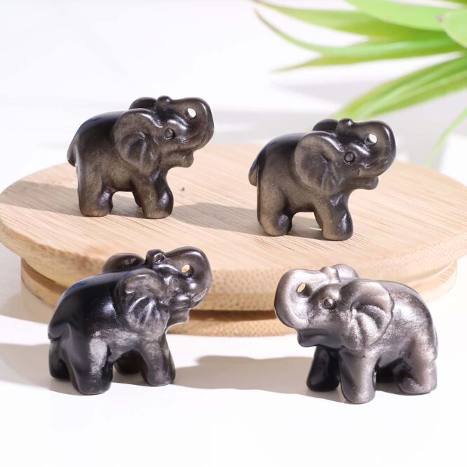 Silver Sheen Obsidian Elephant