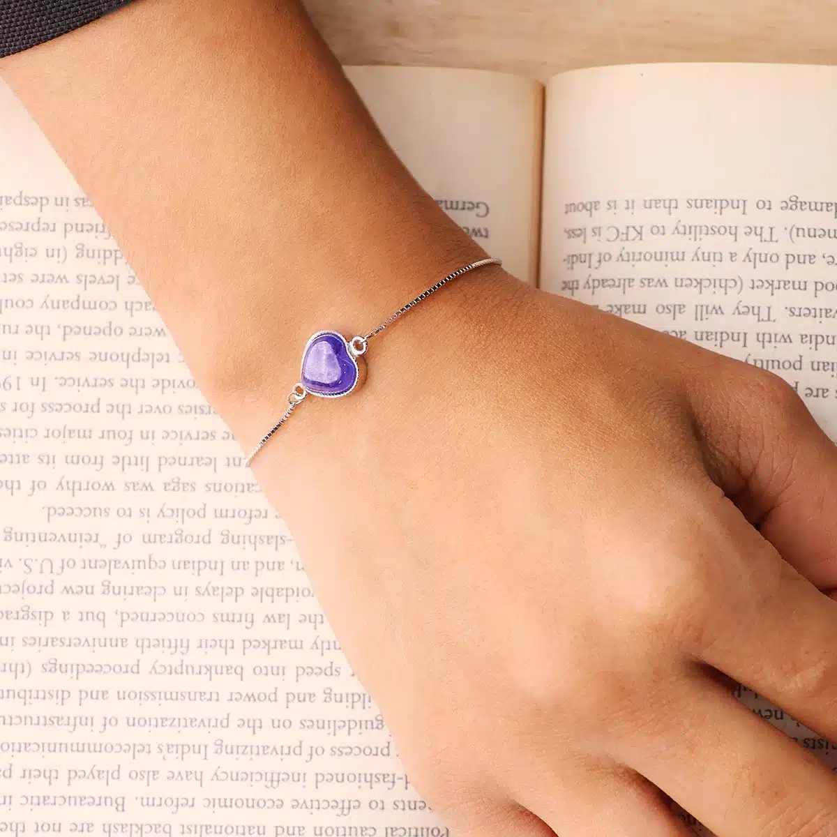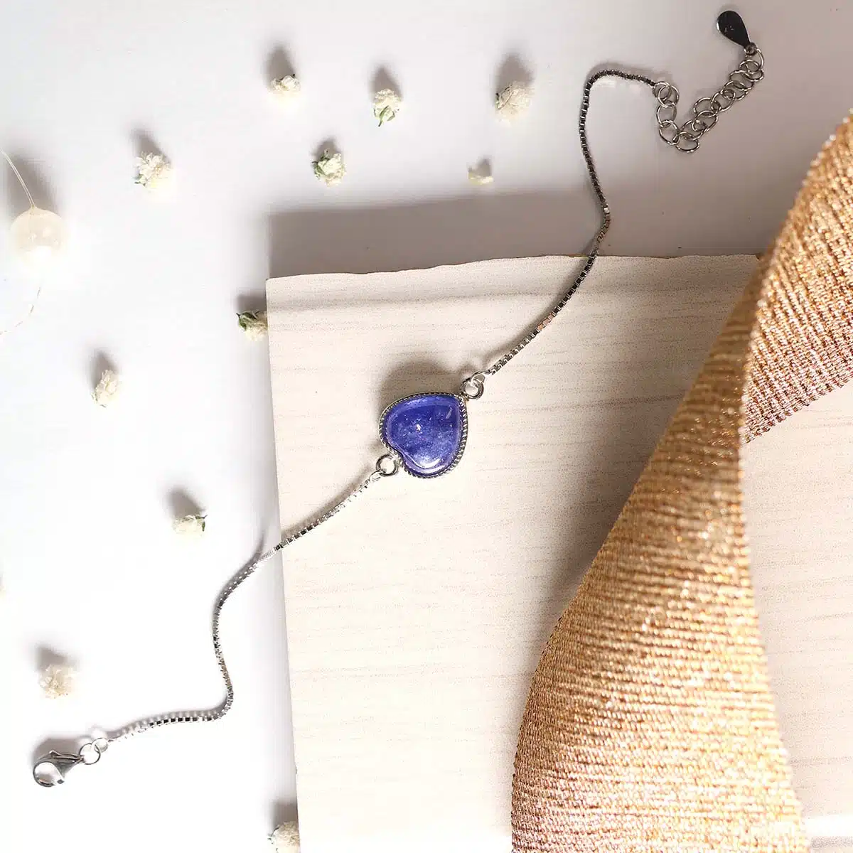 Natural Tanzanite Heart | Sterling Silver 925 Chain | Adjustable Bracelet