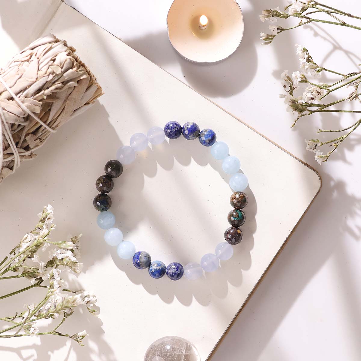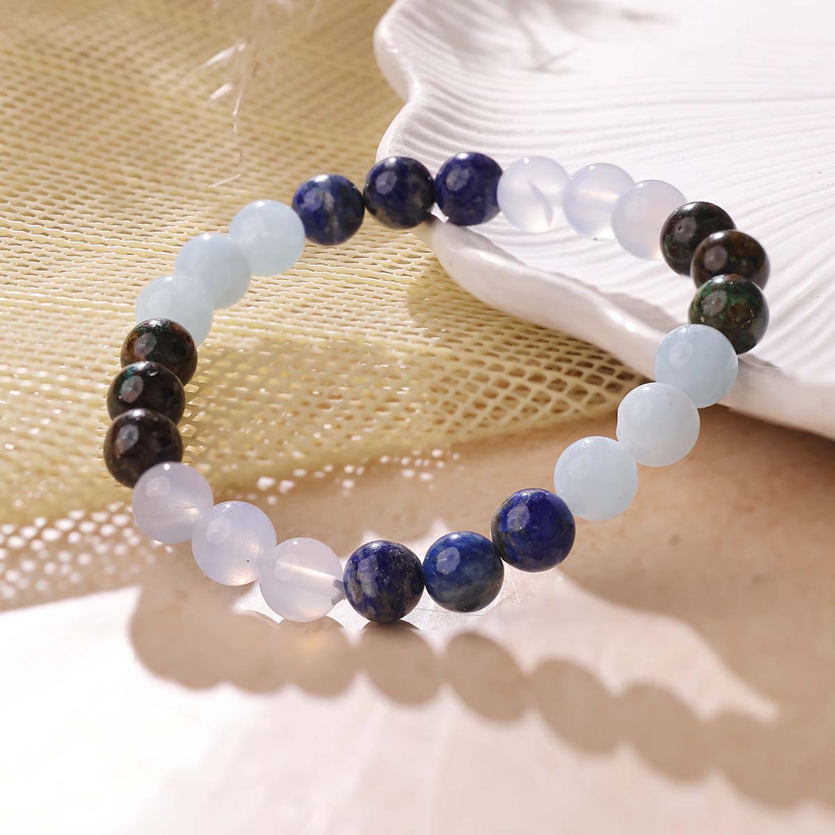 Blue lace agate can balance the throat chakra and reduce the symptoms of thyroid diseases.