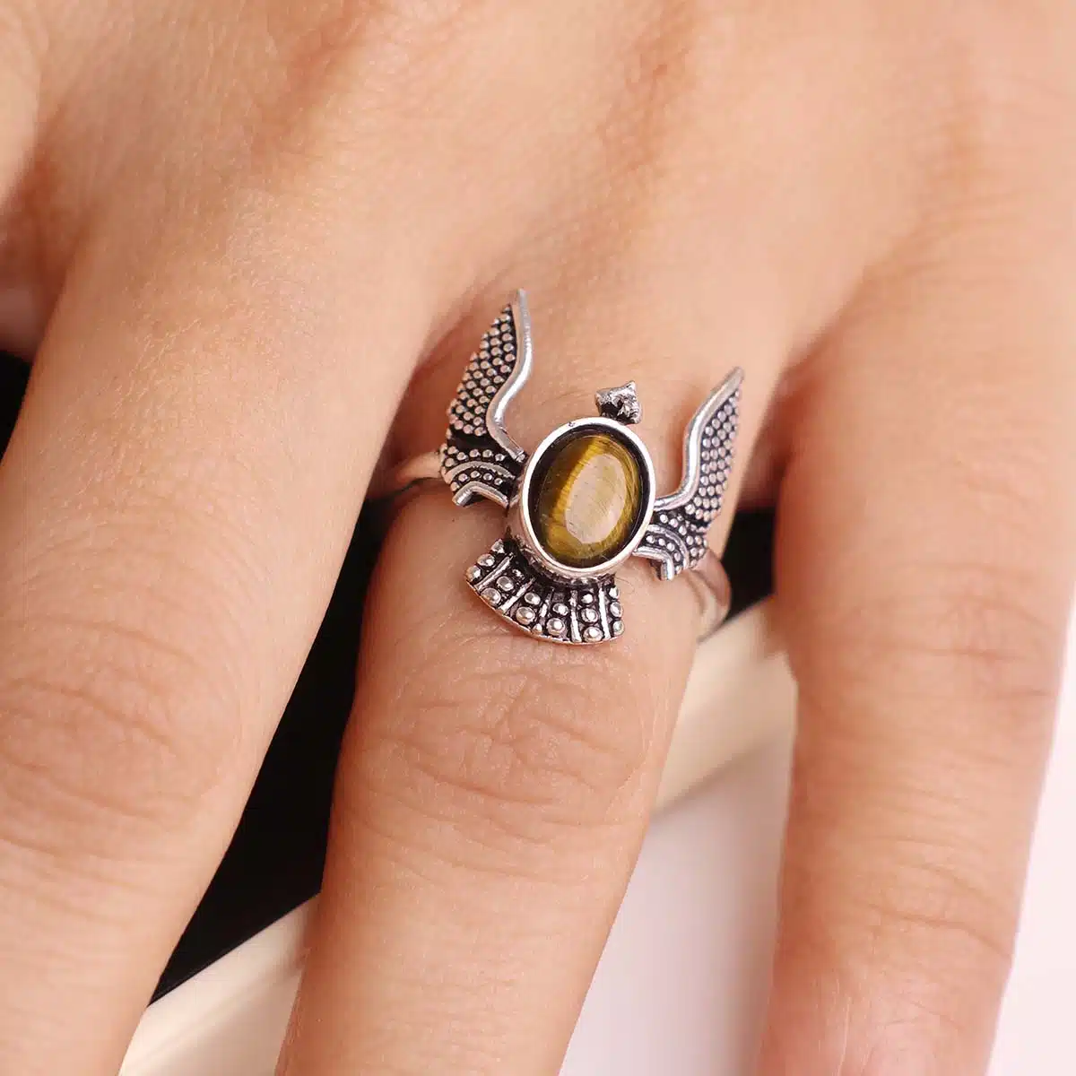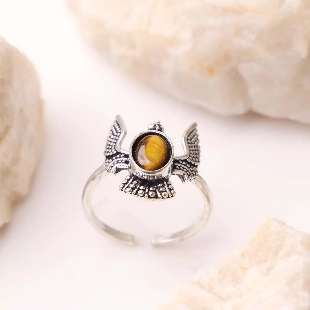 The Tiger Eye Eagle Ring blends the bold power of tiger eye with the eagle’s timeless symbolism of courage, focus, and vision. Tiger eye is known as a stone of protection and confidence, helping you stay grounded while enhancing clarity and determination.