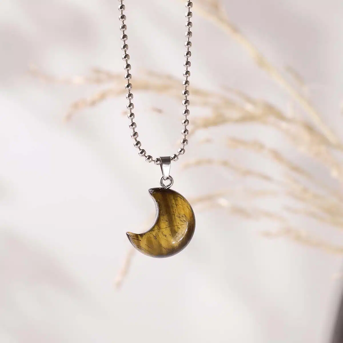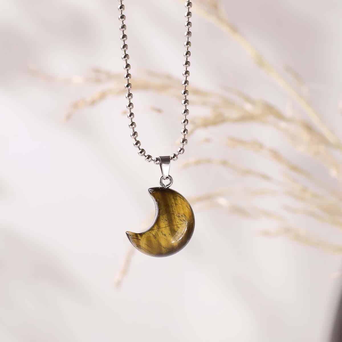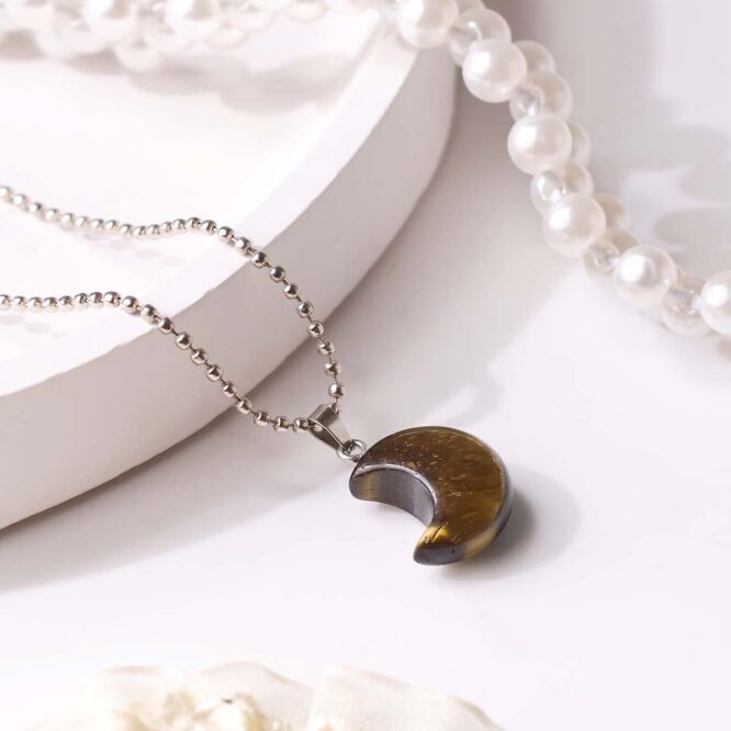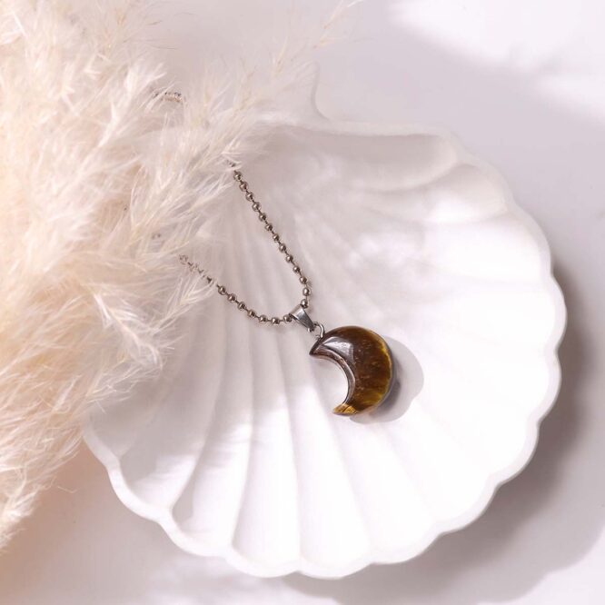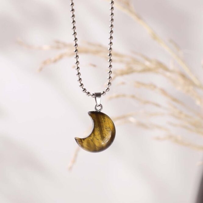 • The half-moon shape symbolizes renewal, intuition, and personal growth, amplifying Tiger Eye’s stabilizing energy.