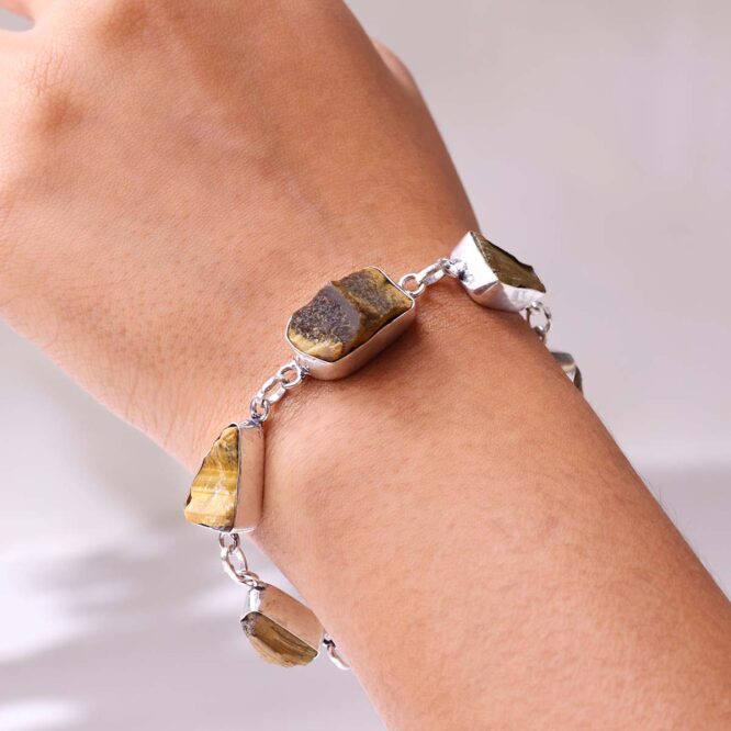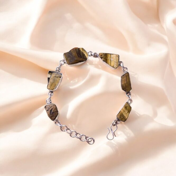 The Tiger Eye Raw Bracelet is a striking piece of natural power and confidence. Crafted with unpolished Tiger Eye stones, it carries the earthy energy of courage, strength, and protection.