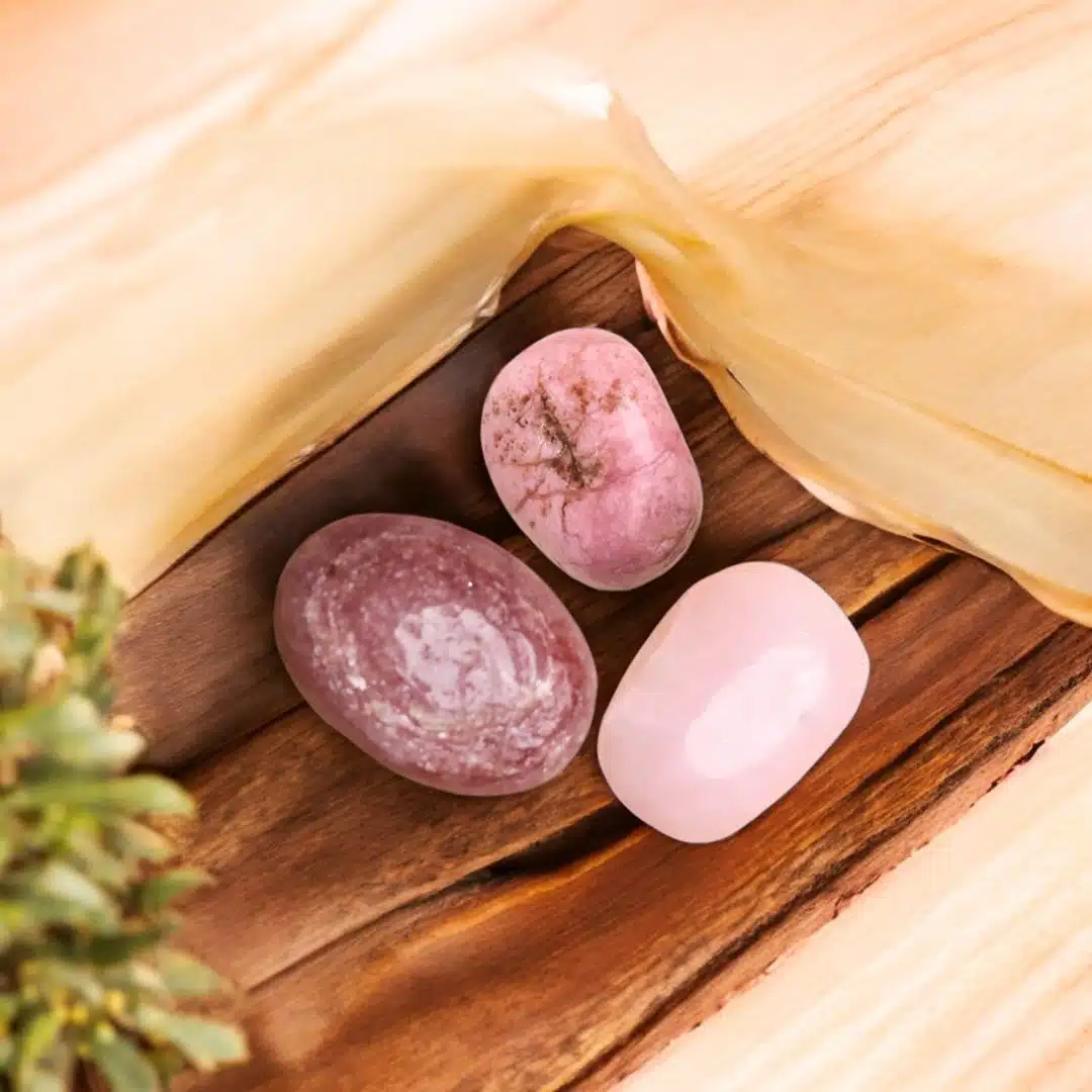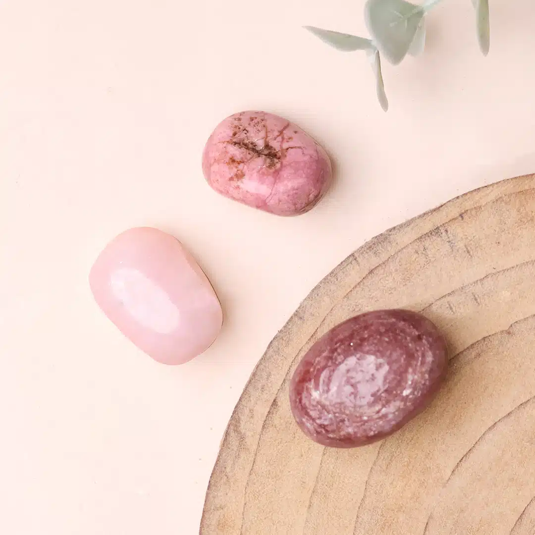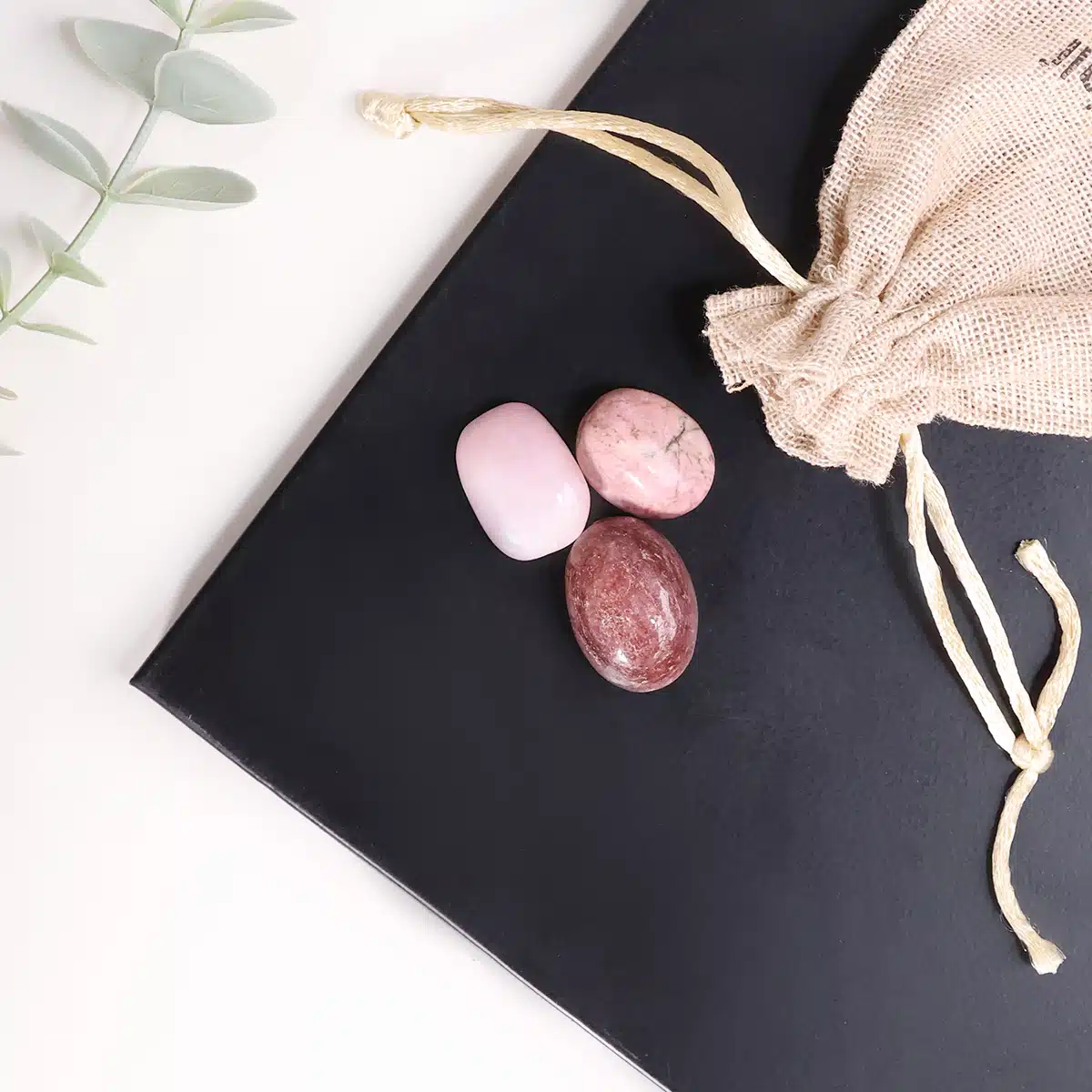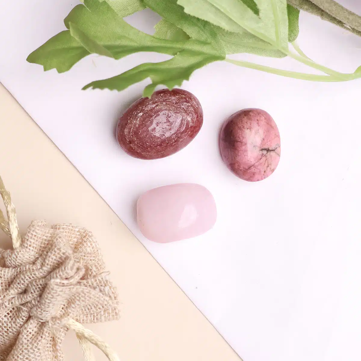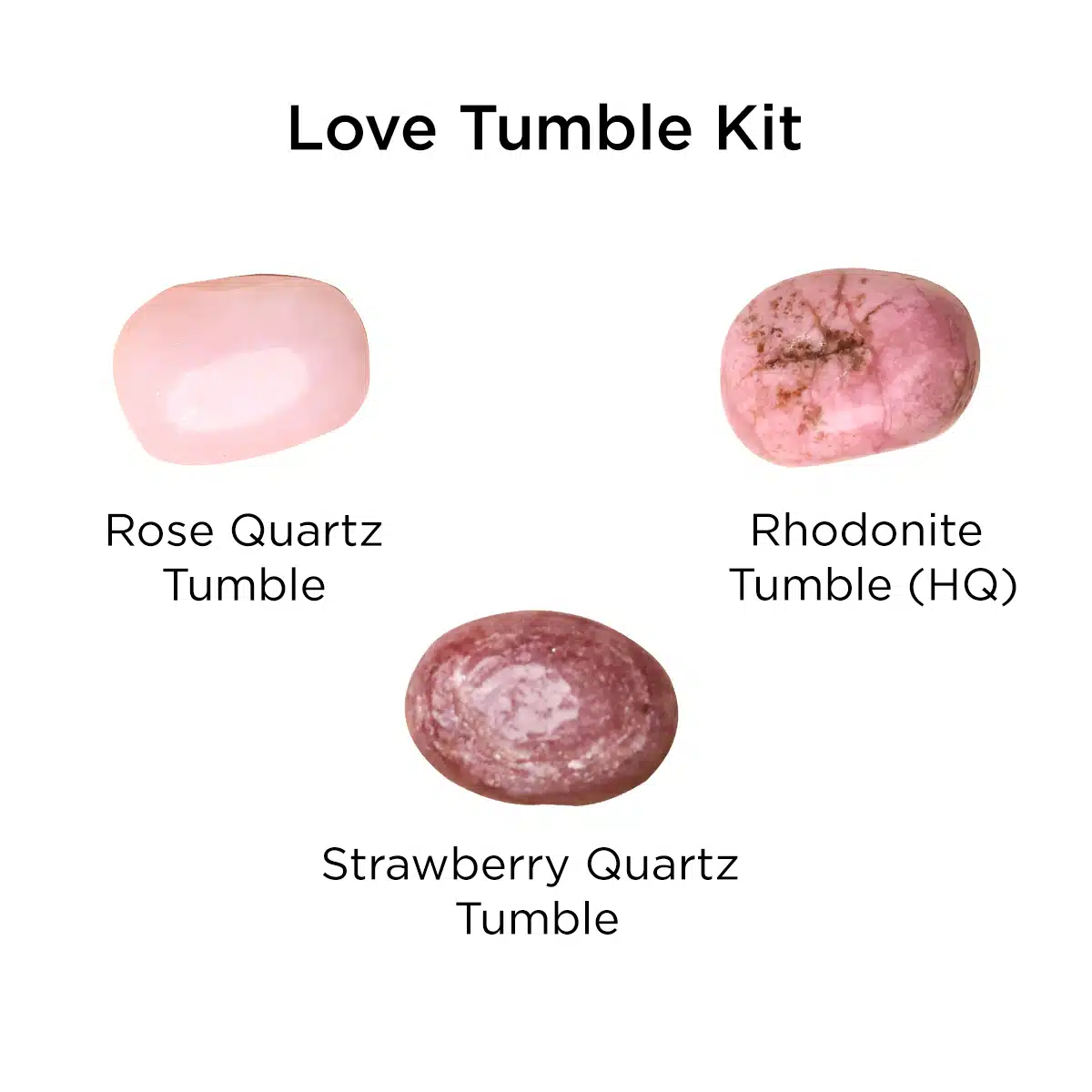 Embrace the loving energies of Rose Quartz, Strawberry Quartz, and Rhodonite with our Crystal Tumble Kit for Love. Let these beautiful stones guide you towards a heart full of love, compassion, and emotional well-being.