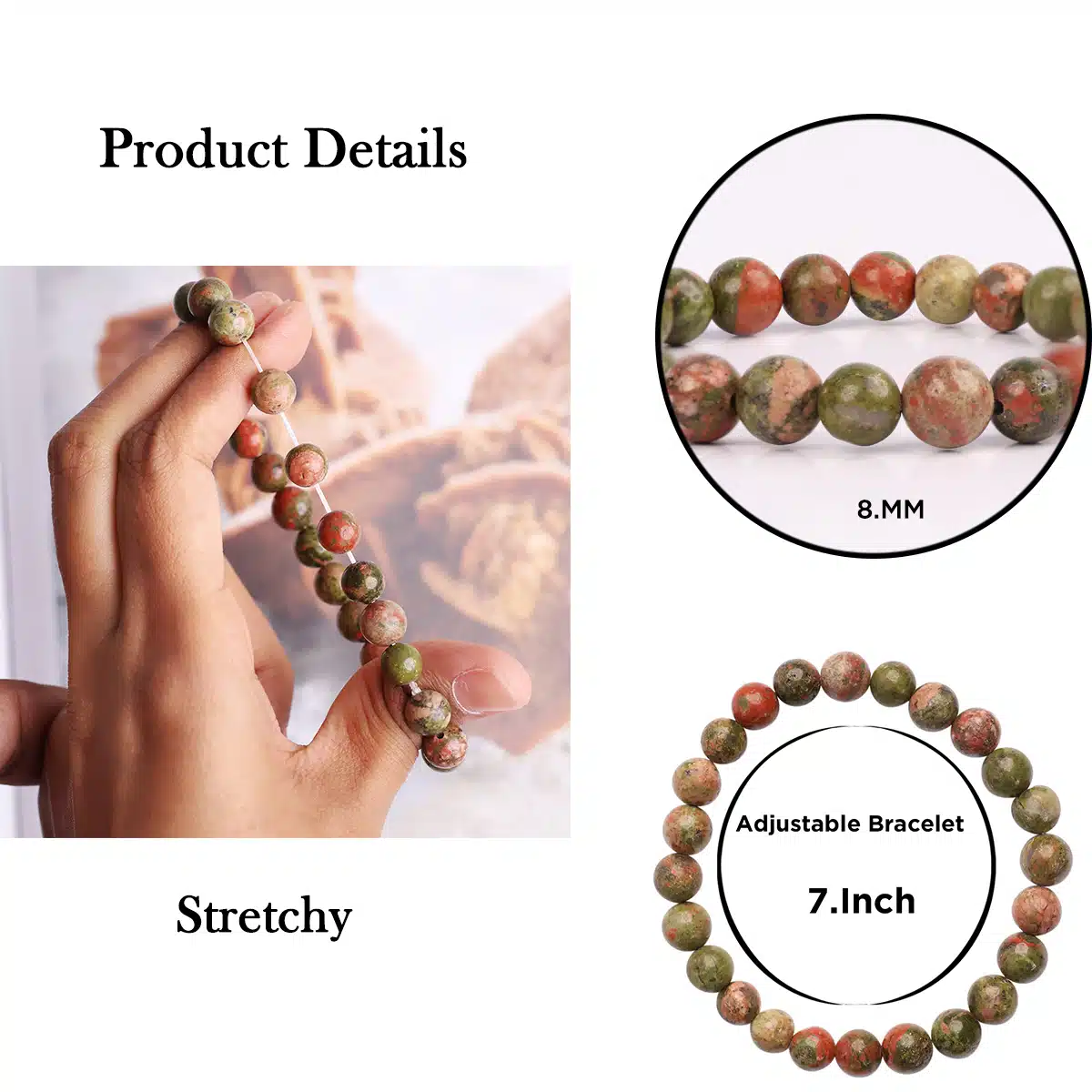 - 1 Unakite Bracelet for Men & Women.GIFT – Valentine, Birthday, Anniversary, Christmas, Friendship Day, Diwali, Gifts For Family and Friends. Stylish Daily/Party/Office/Casual Wear Accessories for Girls/Women.