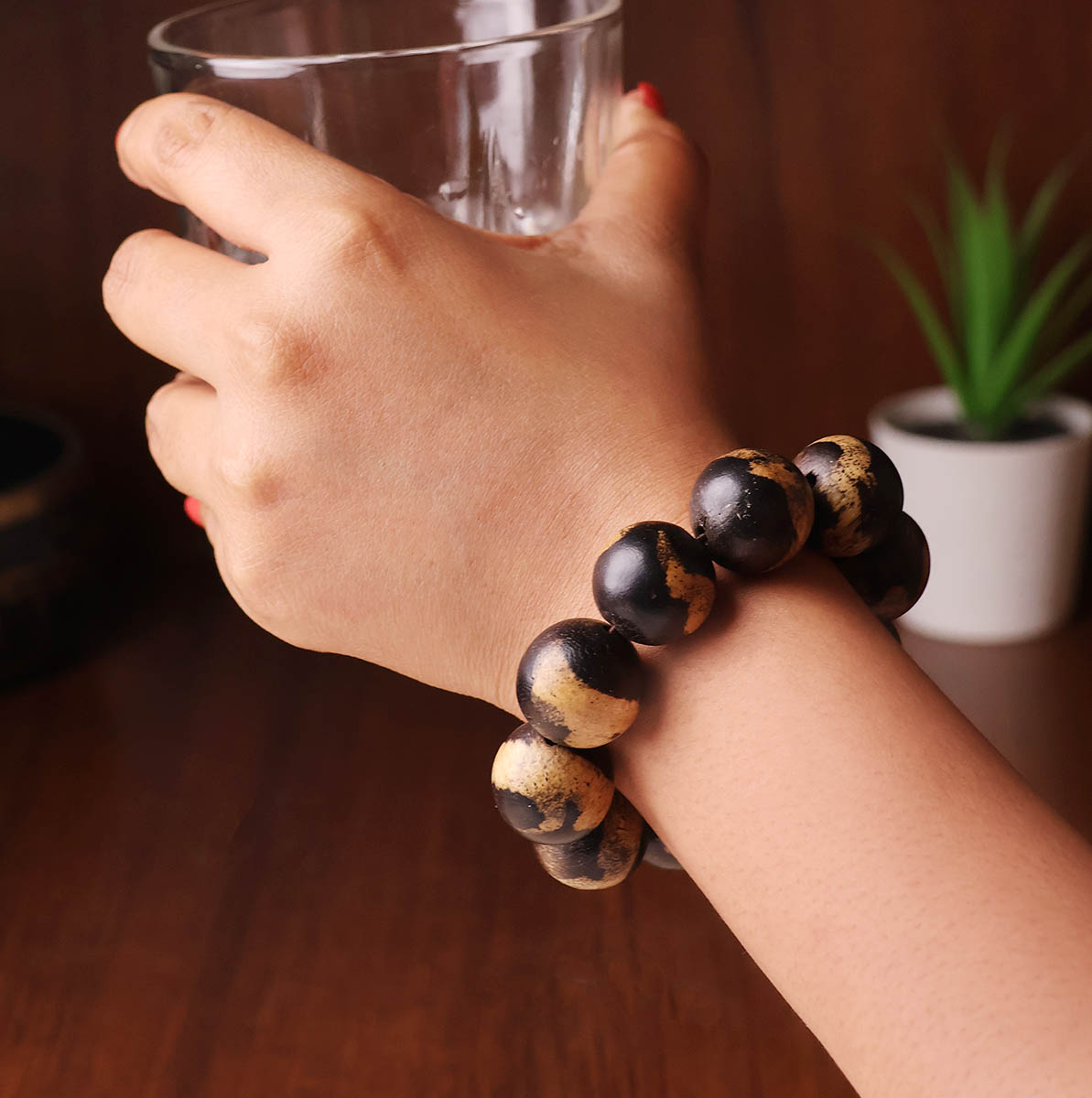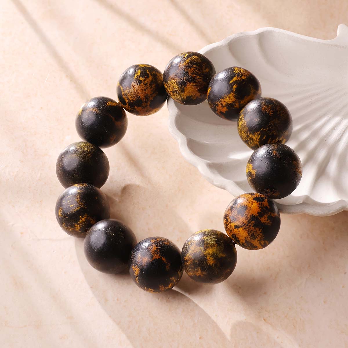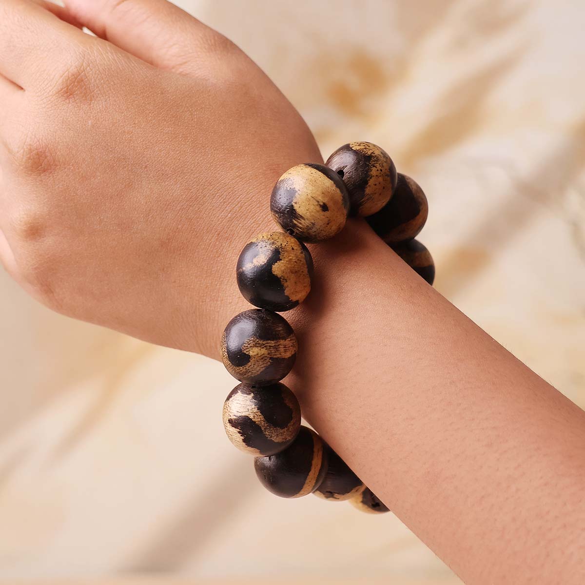 Material: Natural Vietnamese Flower Agarwood | Round Beads | Handmade Elastic Bracelet | Length: 7 Inches