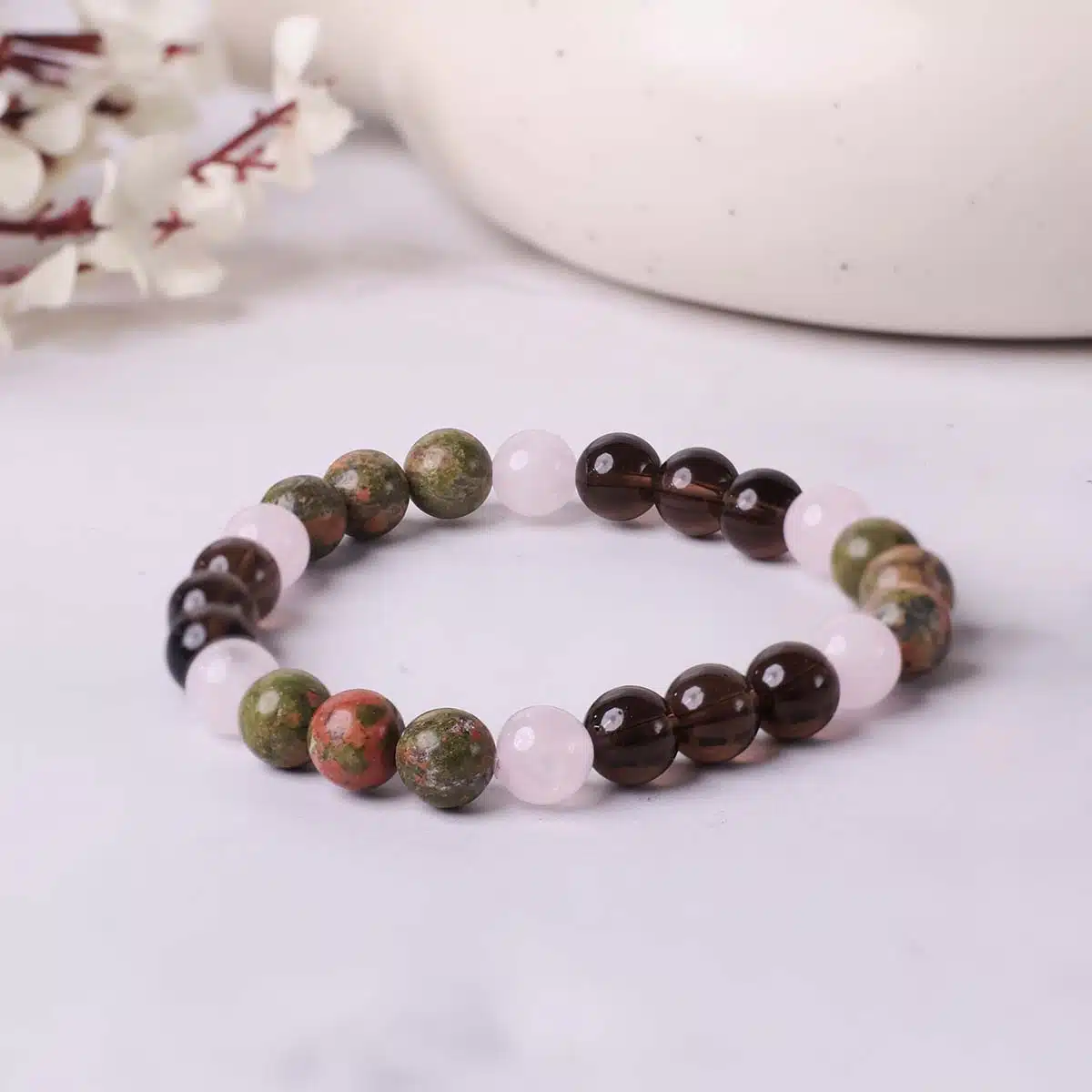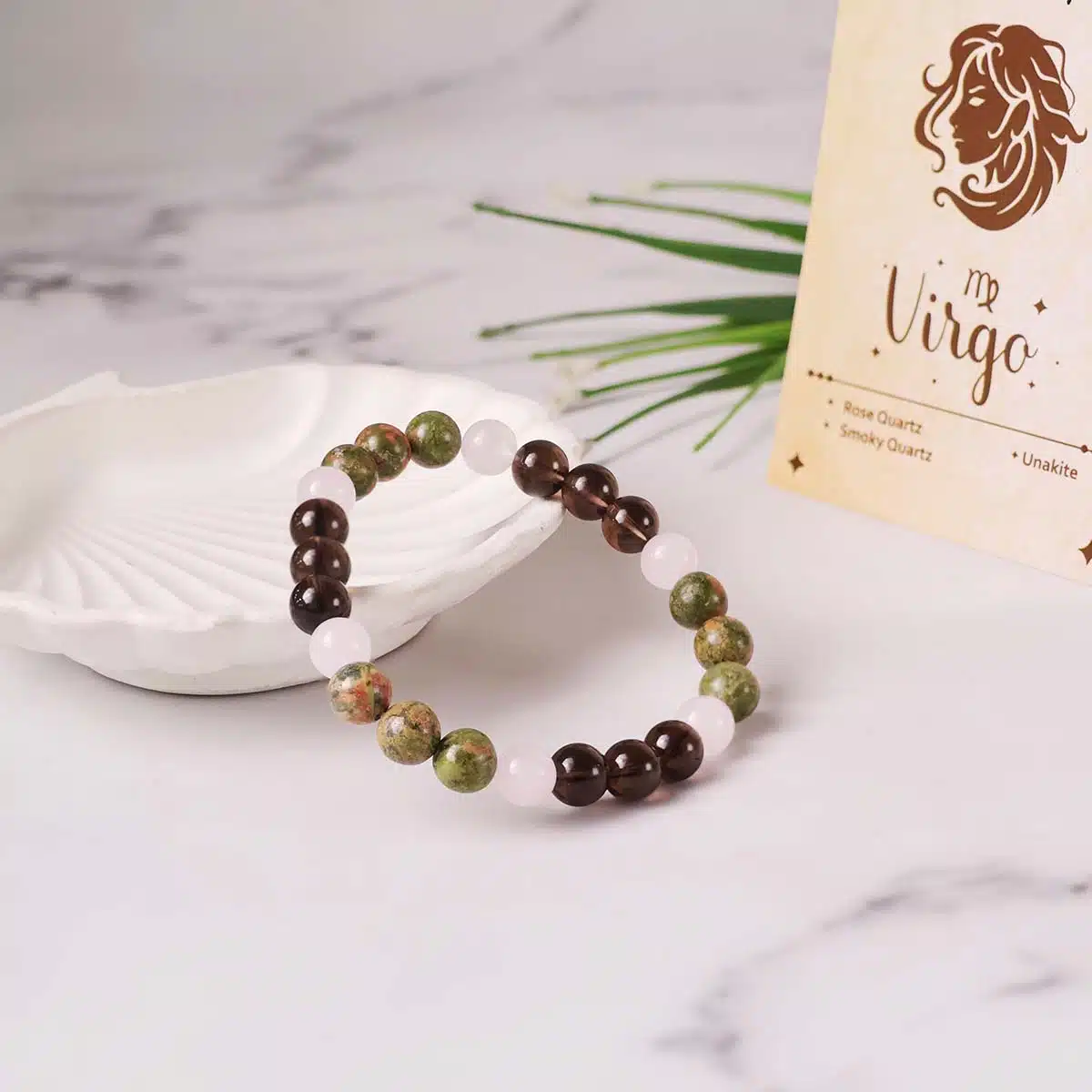 This Virgo Bracelet is made using the following quality power healing beads 8mm Unakite,Rose Quartz,Smoky Quartz.The bracelet made using strong jewellery elastic and will comfortably stretch to fIt’sizes.Virgo Neatness is your second name You have to be zodiacal Virgo! Check out beaded bracelet dedicated to your zodiac sign!