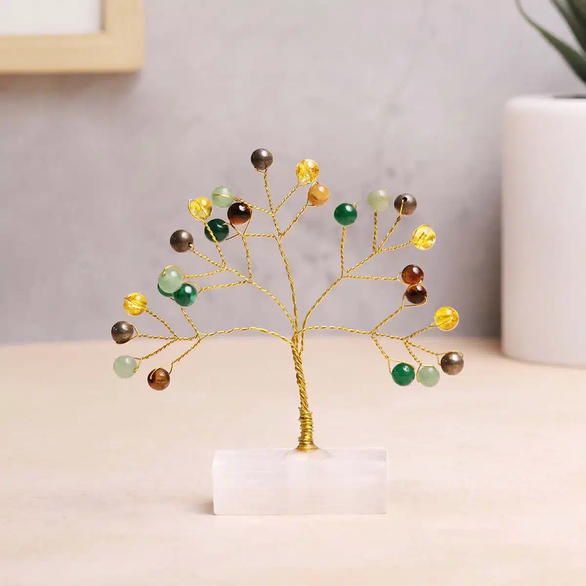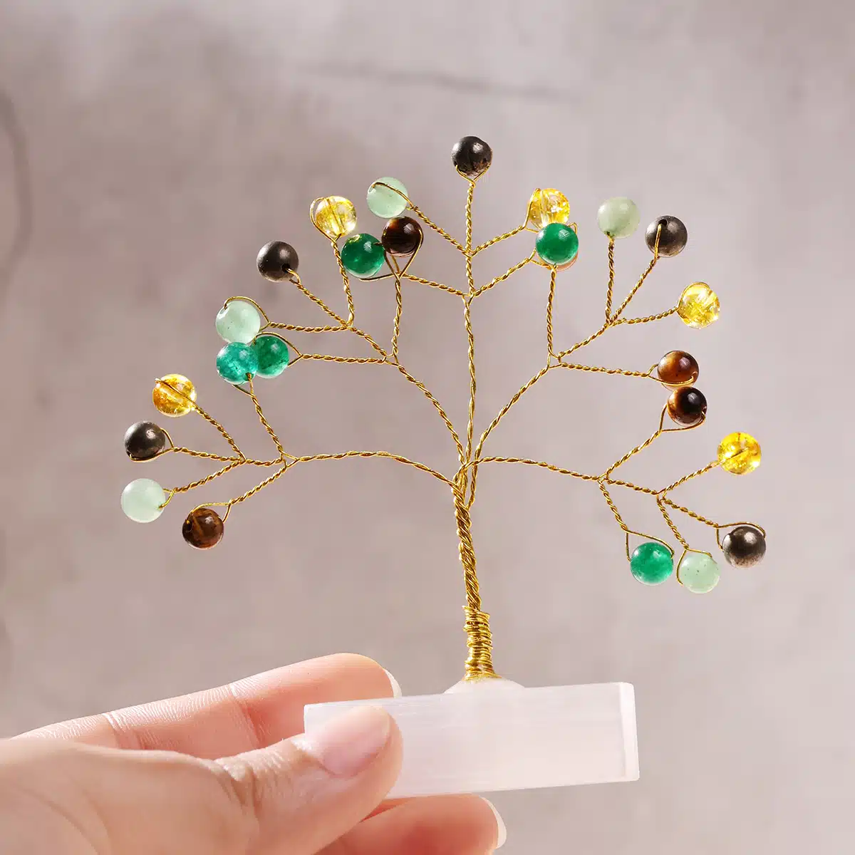 Benefits of Wealth Beads on Selenite Raw Root Tree :