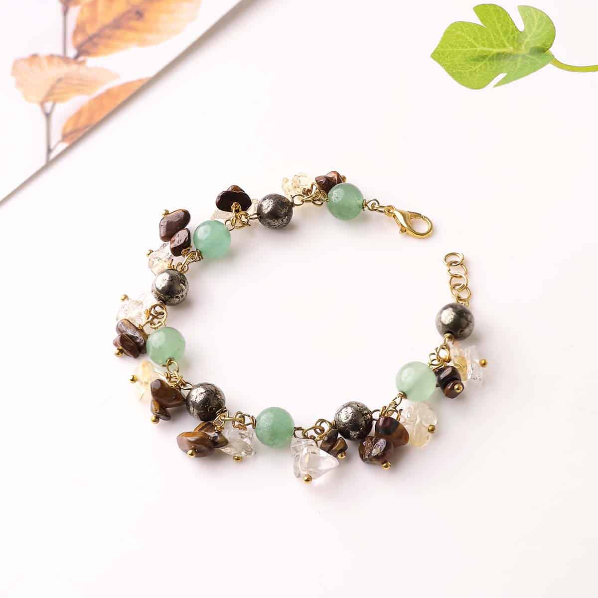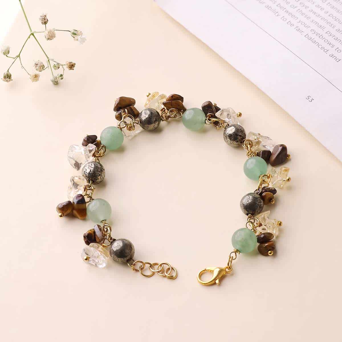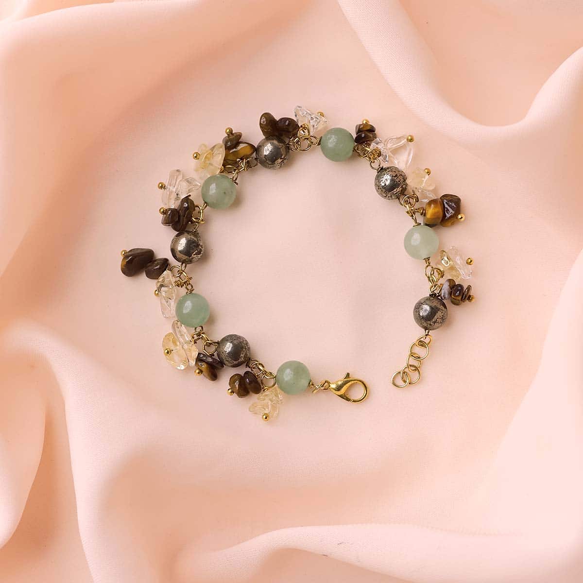 A powerhouse bracelet charged with luck, courage, and money-attracting energy. The Wealth Chips & Beads Bracelet combines four of the strongest prosperity crystals — Pyrite, Citrine, Green Aventurine, and Tiger Eye.