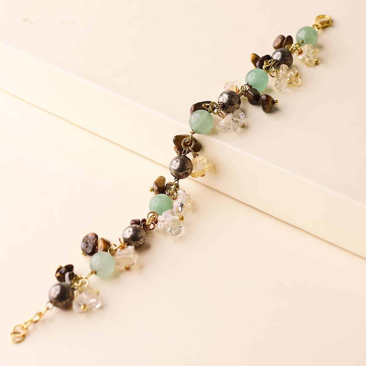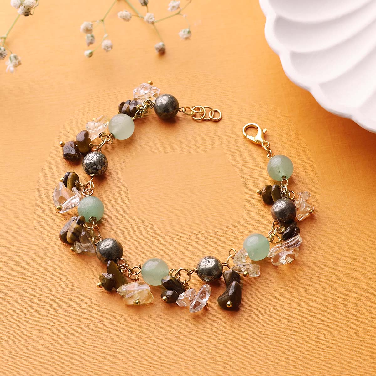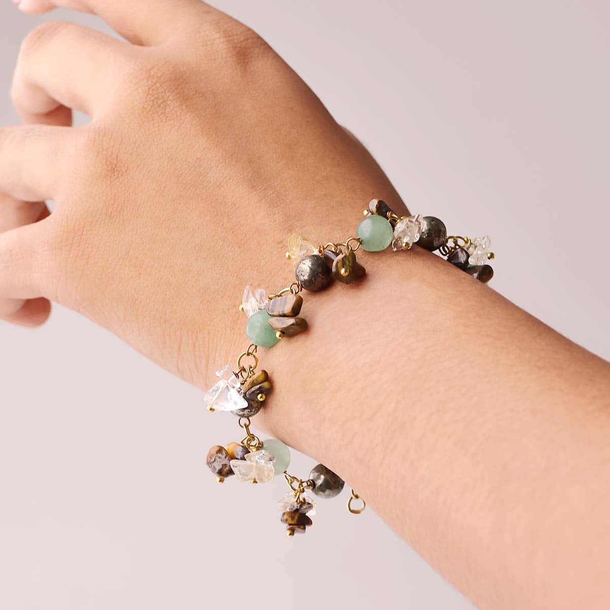 A powerhouse bracelet charged with luck, courage, and money-attracting energy. The Wealth Chips & Beads Bracelet combines four of the strongest prosperity crystals — Pyrite, Citrine, Green Aventurine, and Tiger Eye.