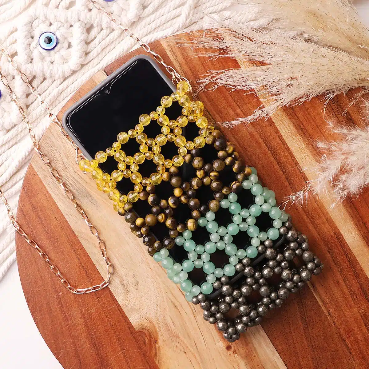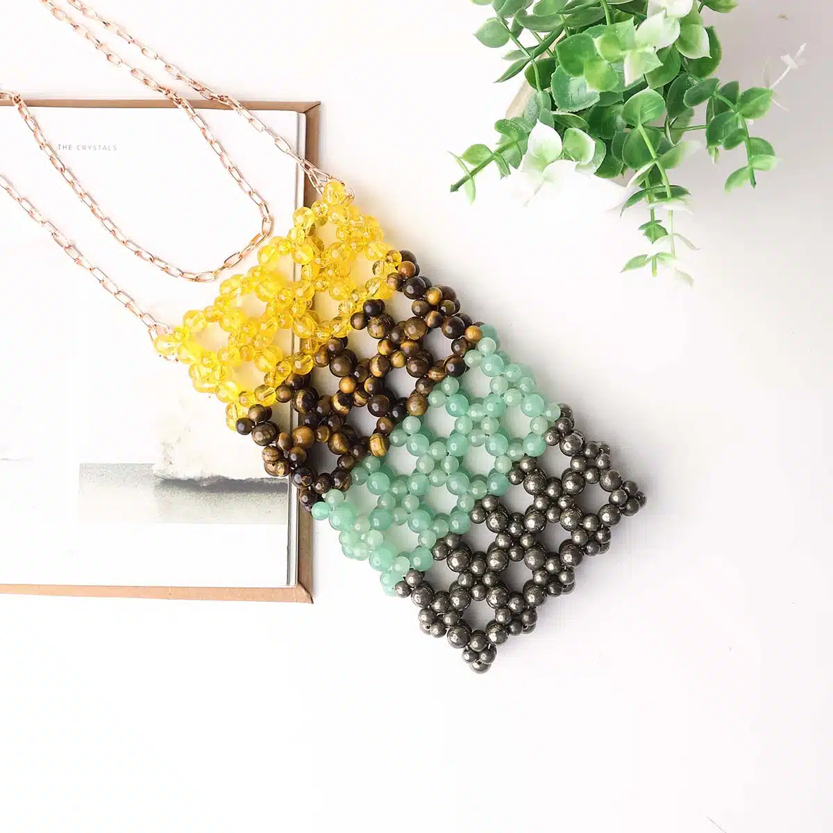 You will receive one Wealth Mobile Hanging Pouch similar to the one shown. Each piece is unique, with natural variations in stone color, shape, and design.