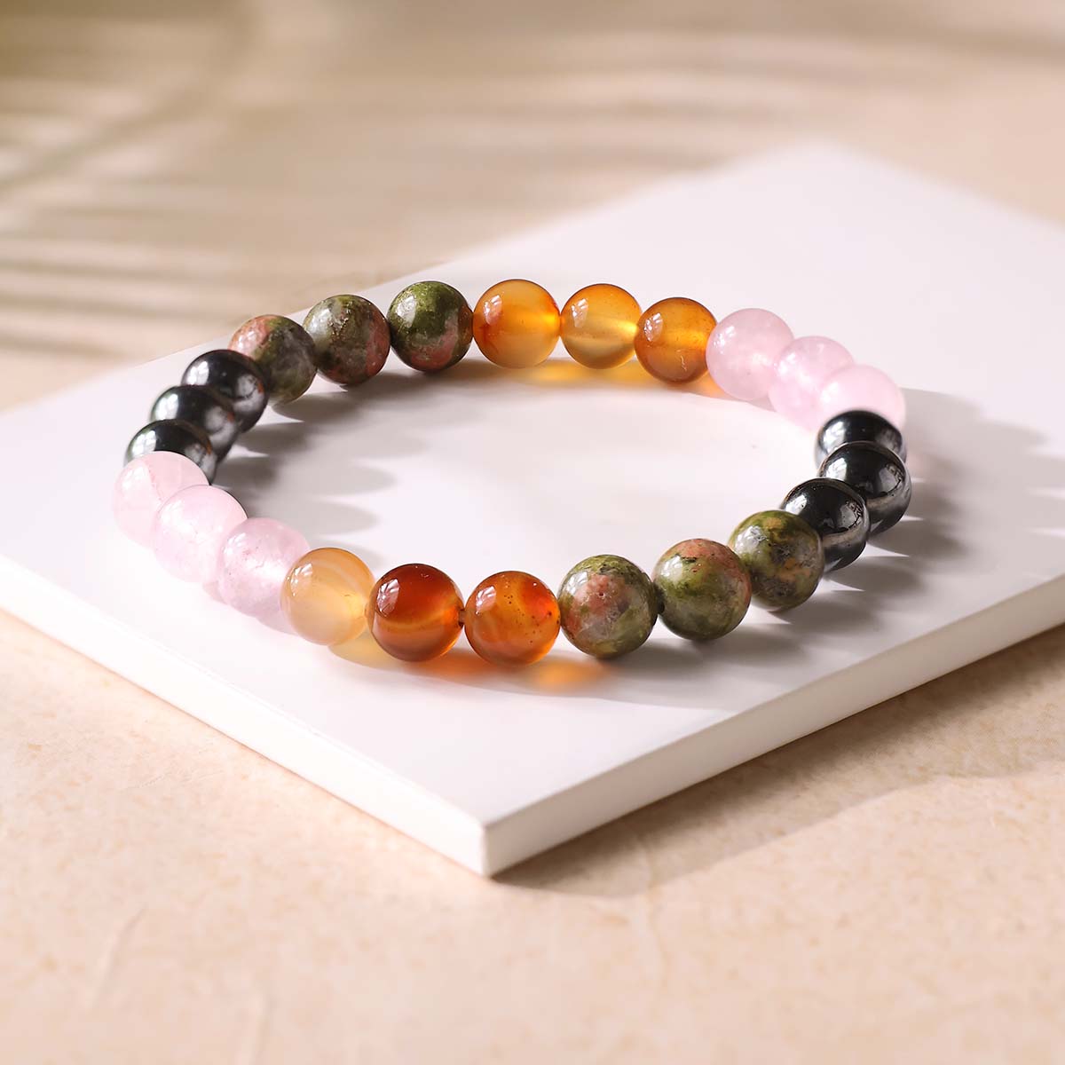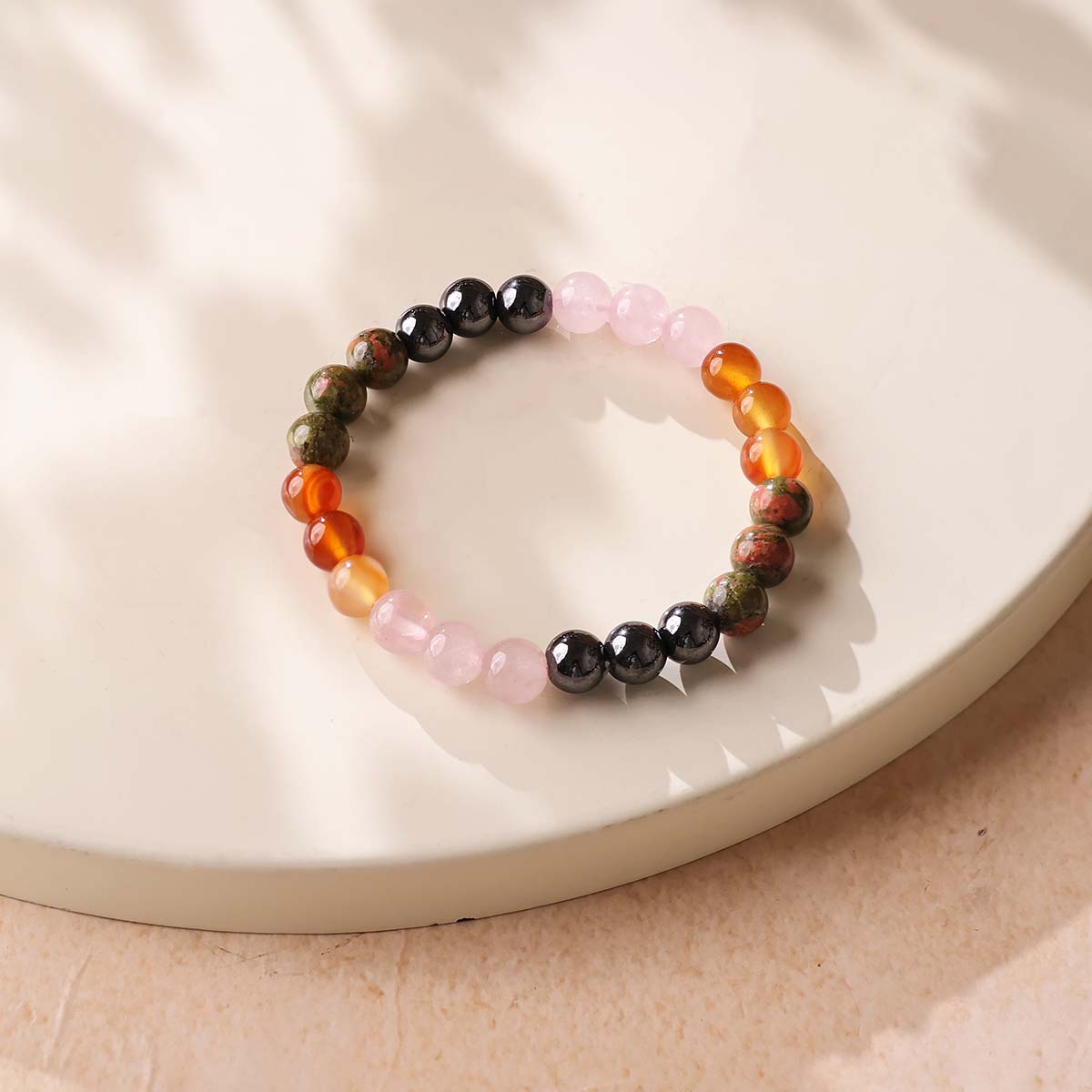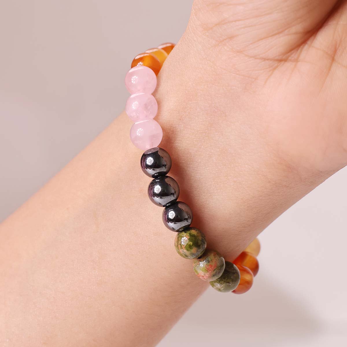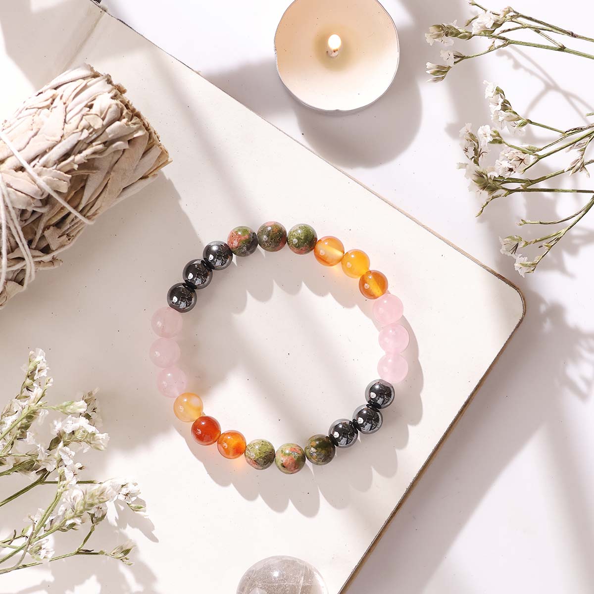 Use a Crystal Stone – Unakite, Carnelian, Rose quartz and Hematite.