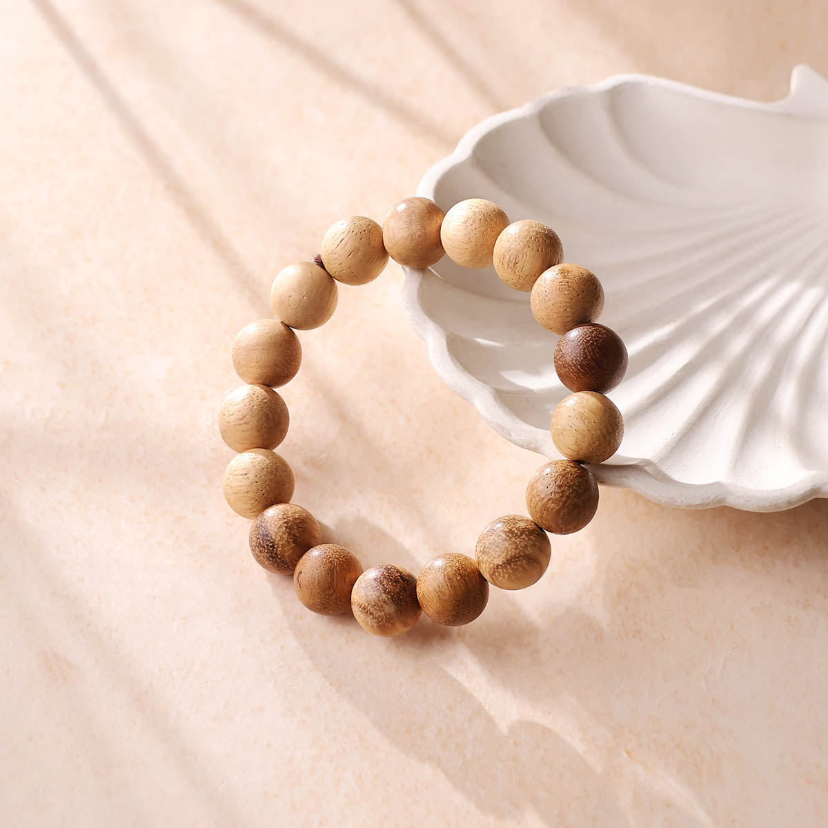 Material: Natural White Agarwood | Round Beads | Handmade Elastic Bracelet | Length: 7 Inches