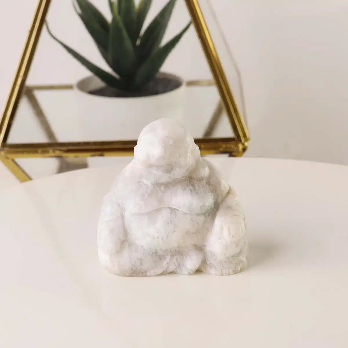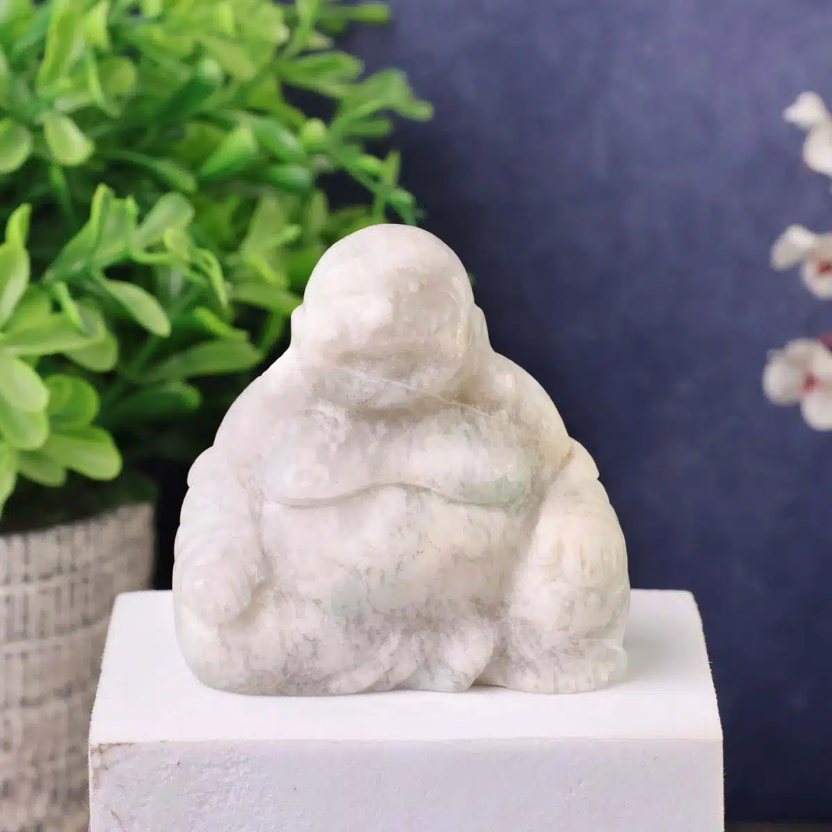 Laughing Buddha is a universal symbol of wealth and fortune. White Jade supports manifestation and prosperity with pure intention. Ideal for feng shui wealth corners, entryways, or work desks.