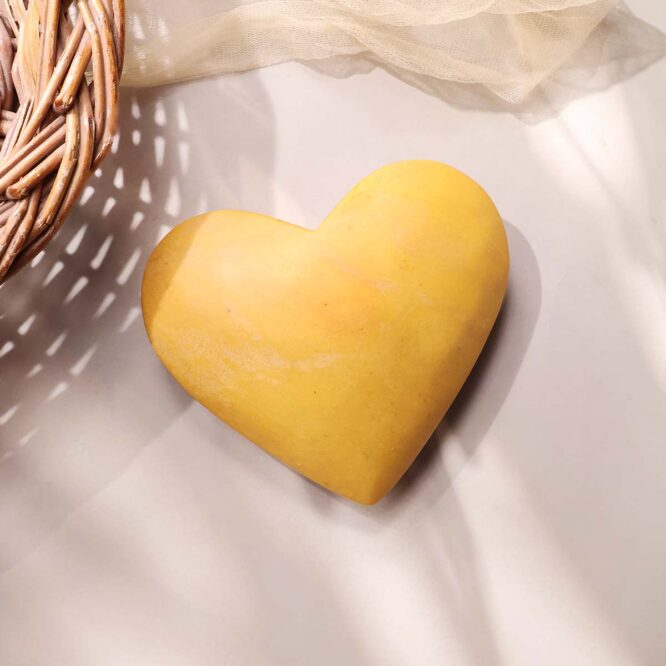 The Yellow Jade Big Heart is a bright and uplifting crystal carved in a heart shape, radiating positivity, abundance, and joy. Known for its cheerful energy, Yellow Jade encourages self-confidence, optimism, and emotional balance.