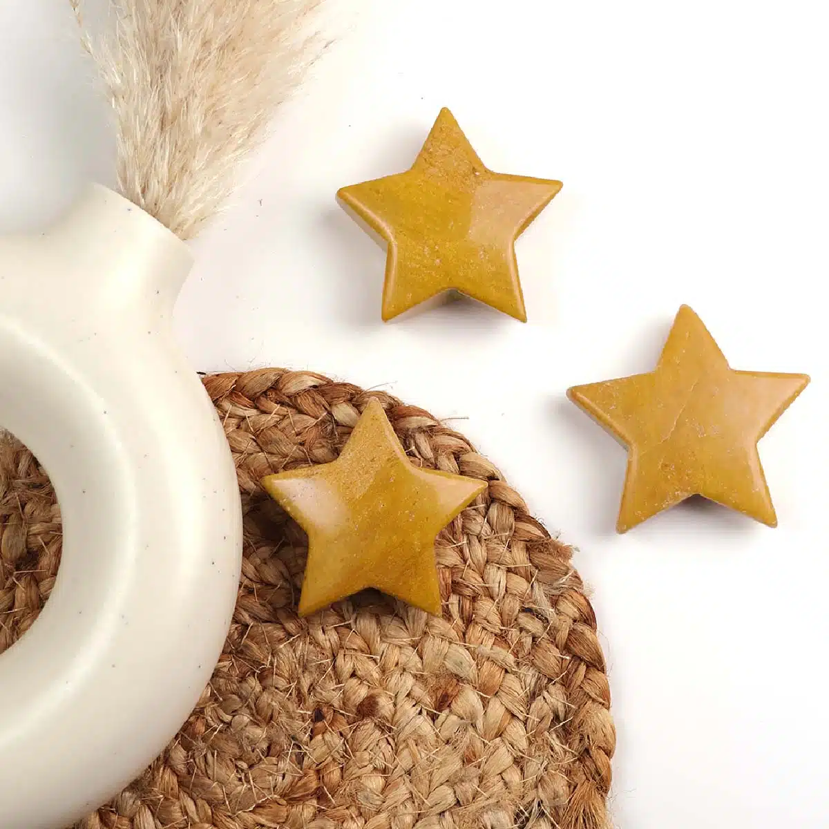 Embrace the vibrant energy and spiritual wisdom of the Yellow Jade Crystal Carved Star. Let it illuminate your path with joy, vitality, and inner harmony, guiding you towards a life filled with positivity and enlightenment.